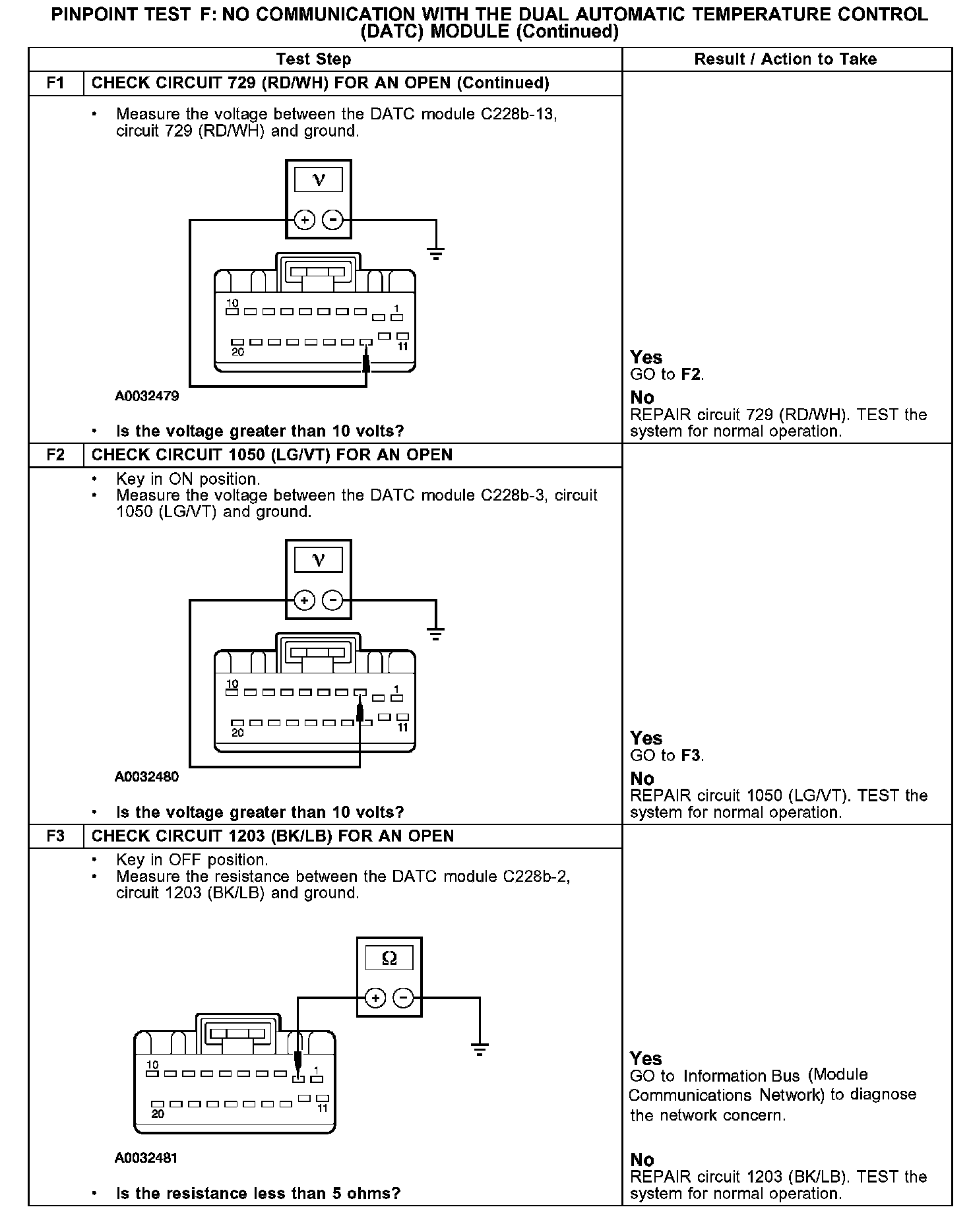 PINPOINT TEST F: NO COMMUNICATION WITH THE DUAL AUTOMATIC TEMPERATURE CONTROL (DATC) MODULEF1: