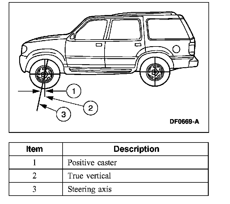 Caster is the deviation from vertical of an imaginary line drawn through the ball joints when viewed from the side. The caster specifications in this information will give the vehicle the best directional stability characteristics when loaded and driven. The caster setting is not related to tire wear.