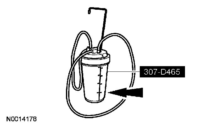 14. Inspect the fluid level in the special tool. If the fluid drains back into the canister, the transmission is full. If no fluid drains back more fluid will need to be added. Repeat Steps 12 and 13.