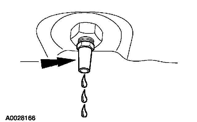 16. Allow the fluid to drain. Make sure that the fluid temperature is between 27 - 49°C (80 - 120°F). When the fluid comes out as a thin stream or drip, the fluid is at the correct level.