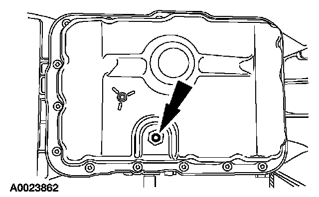 7. Hold the larger drain plug with a wrench and remove the small (center) fluid level indicating plug.