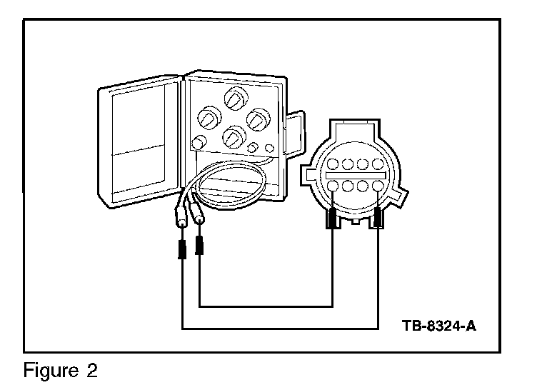 4. Connect one lead of the instrument gauge system tester to the Fuel Pump Gauge Sender C433-8, Circuit VMC11 (YE/VT), harness side and the other lead to the Fuel Pump Gauge Sender C433-5, Circuit RMC32 (GN/BU), harness side. (Figure 2)
