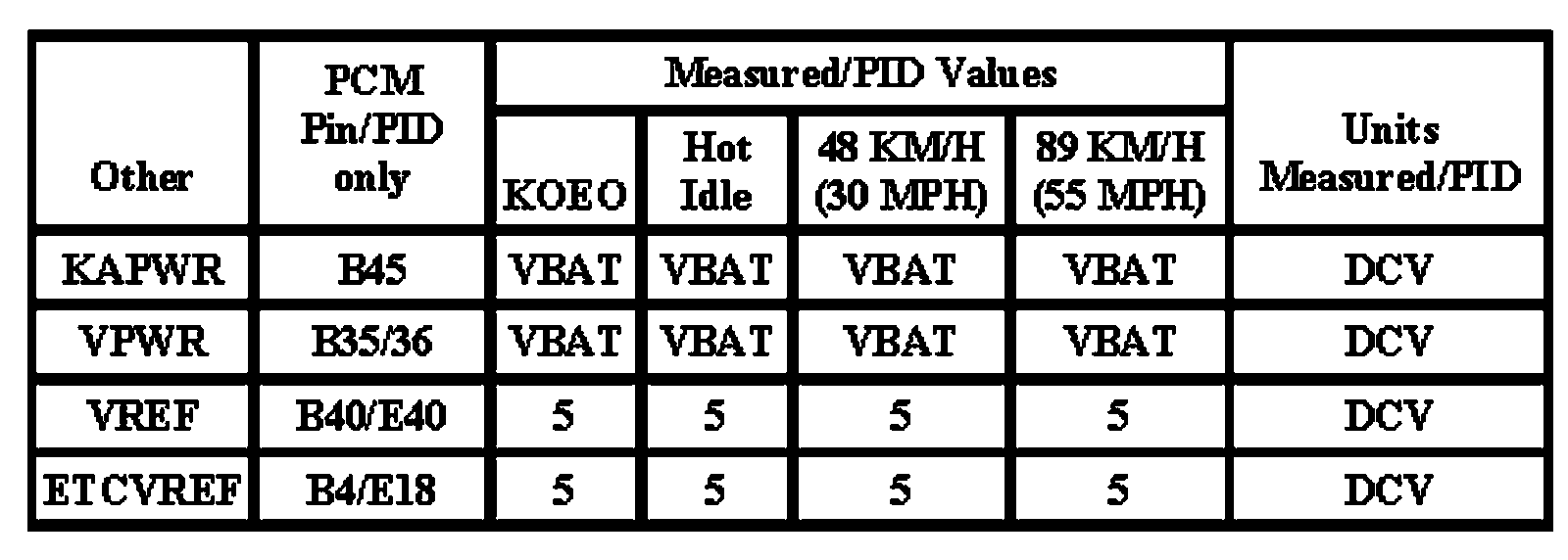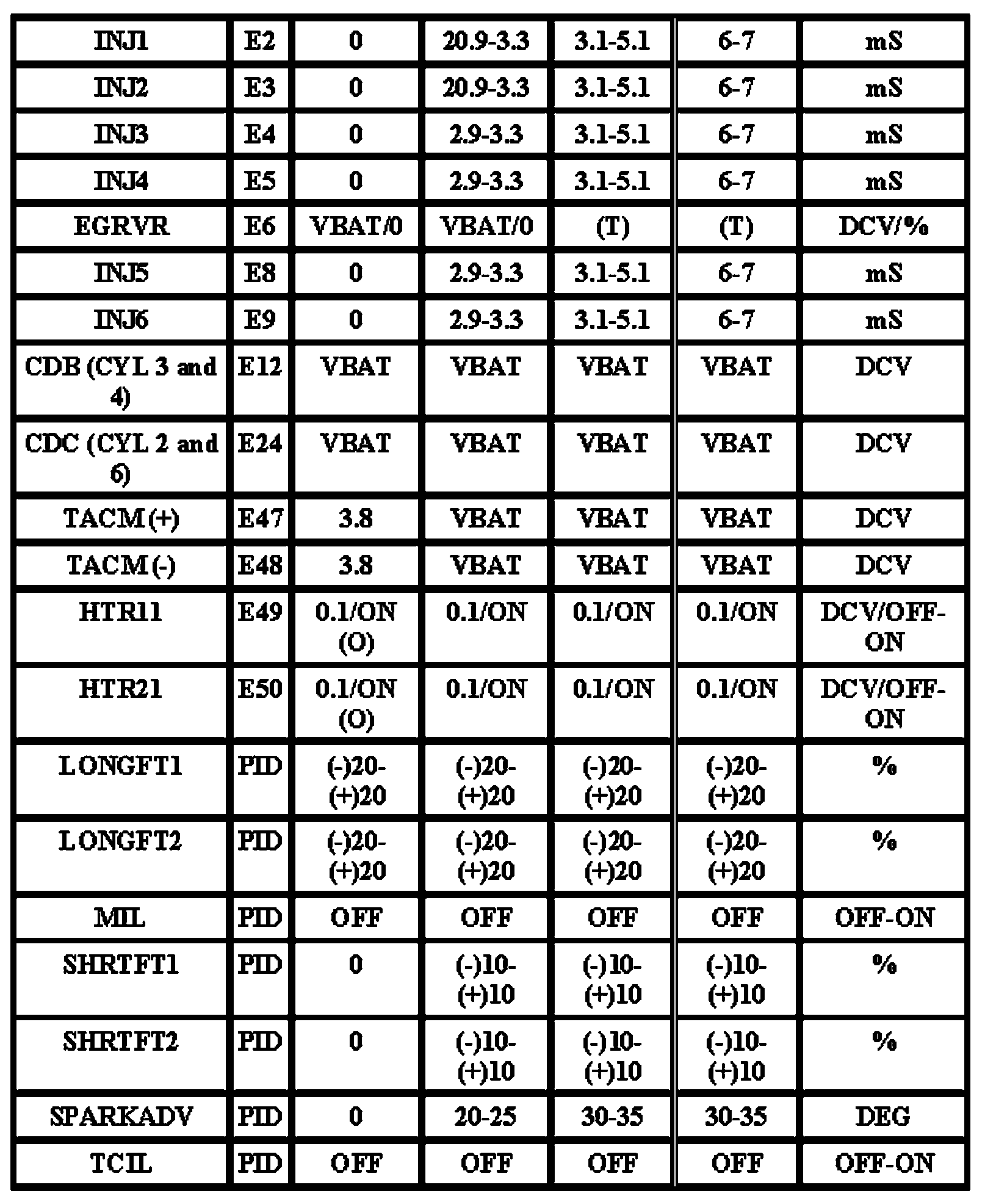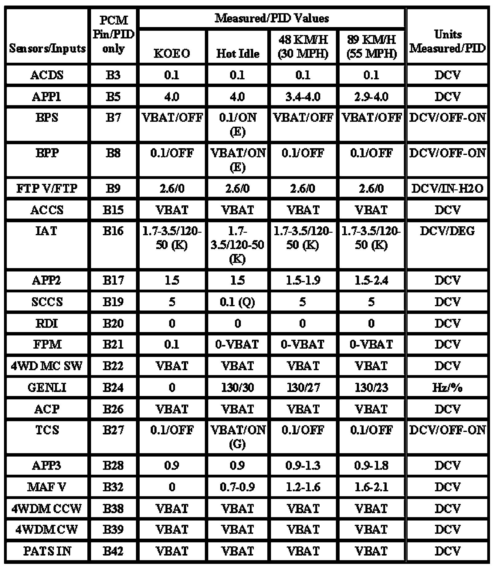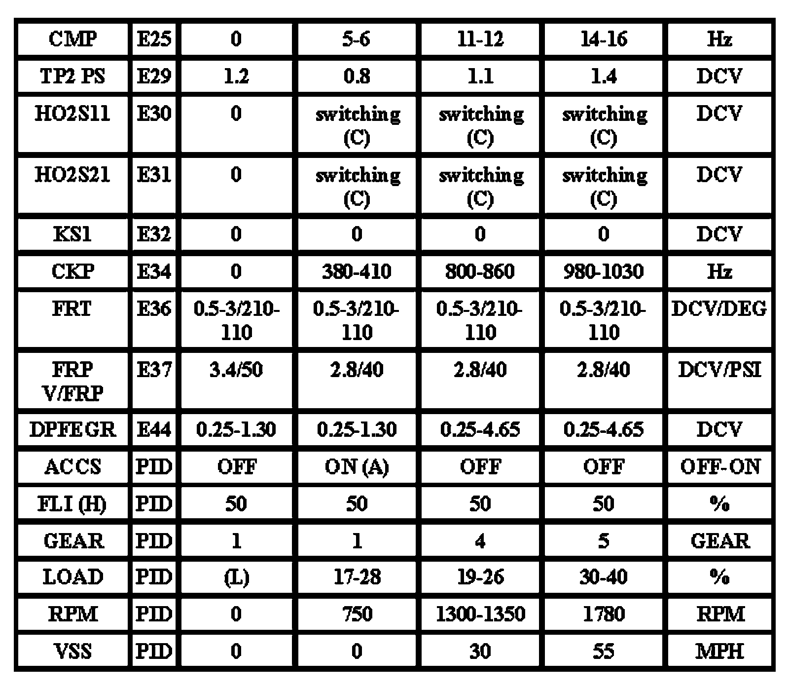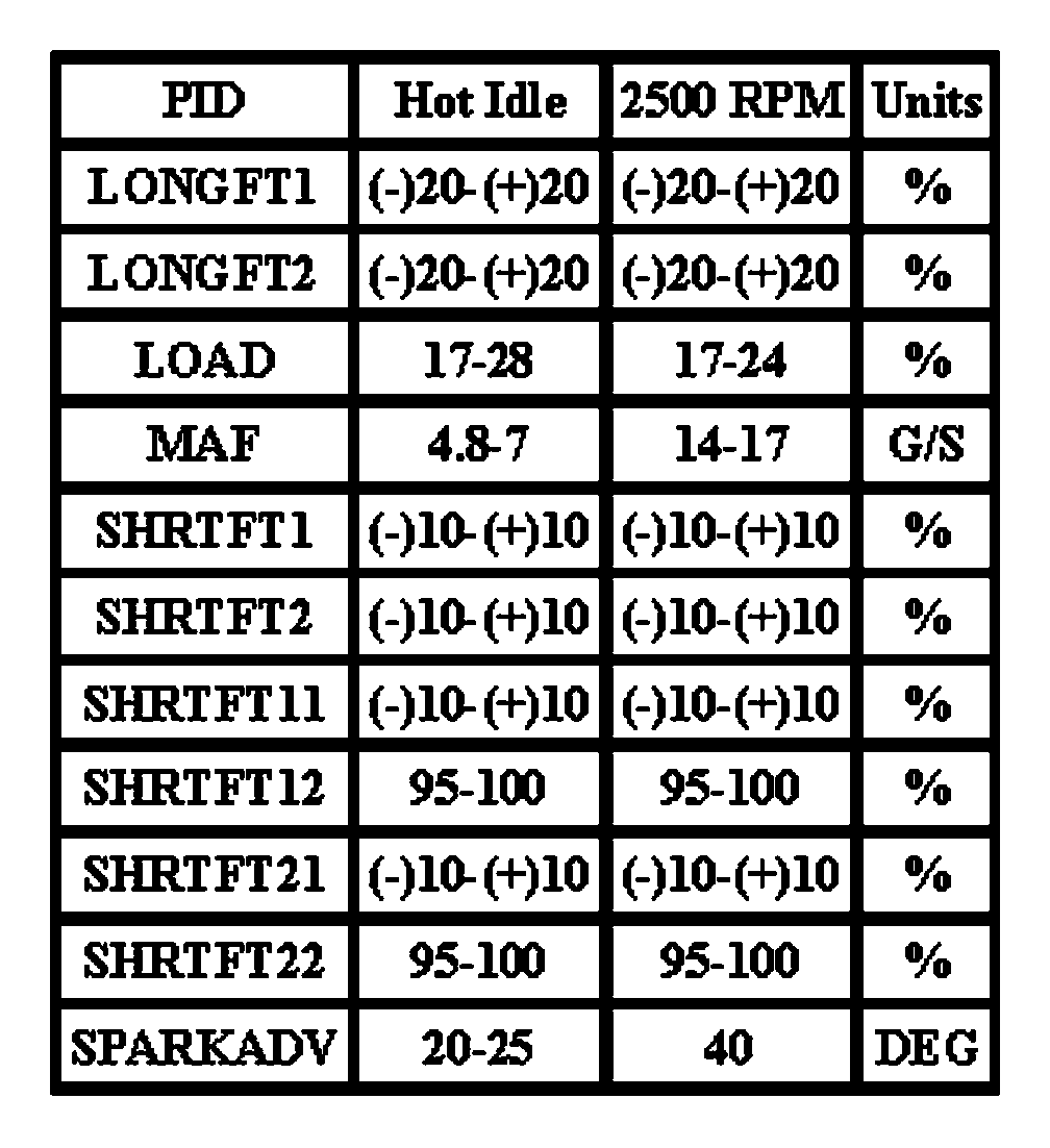 Note: All generic OBD readings under no load (PARK or NEUTRAL).