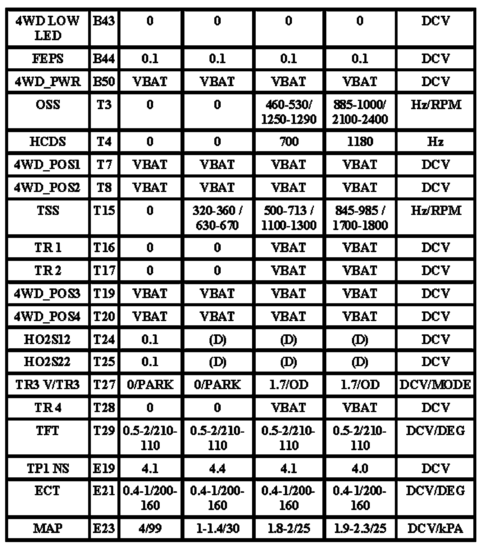 An attempt is made to provide as much information as possible; some vehicles may not display all input and output signals.