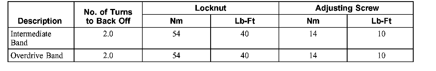Band Adjustment and Torque Chart