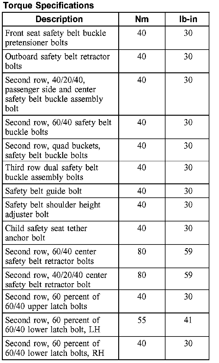 Torque Specifications: