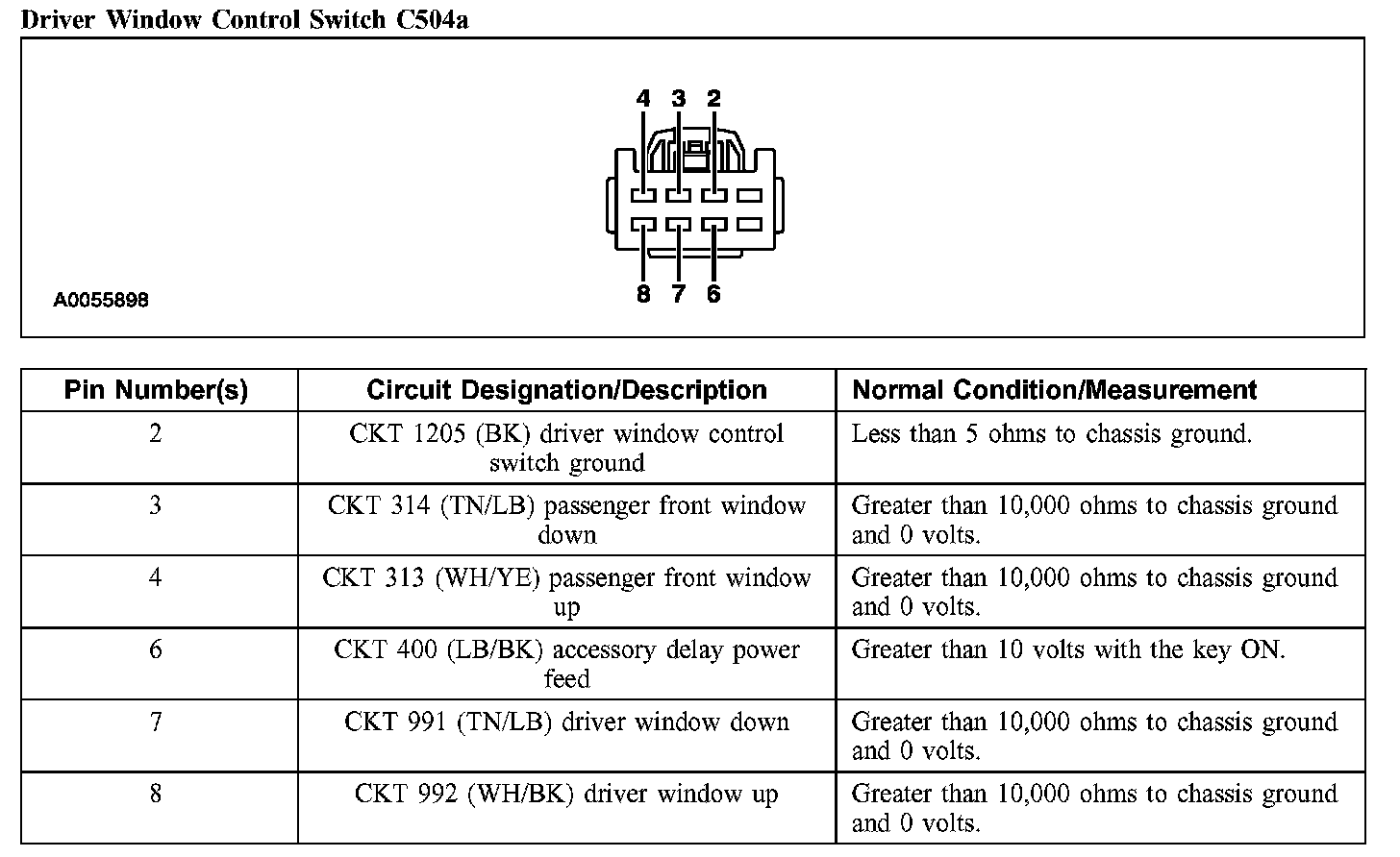 Driver Window Control Switch C504a: