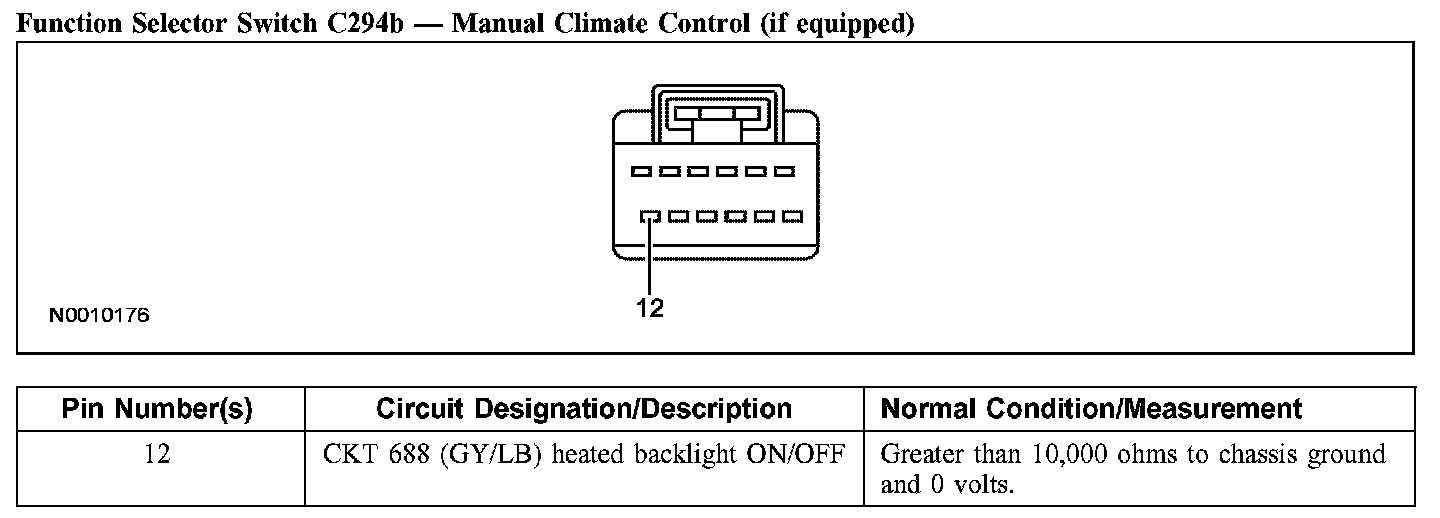 Function Selector Switch C294b - Manual Climate Control (if Equipped):