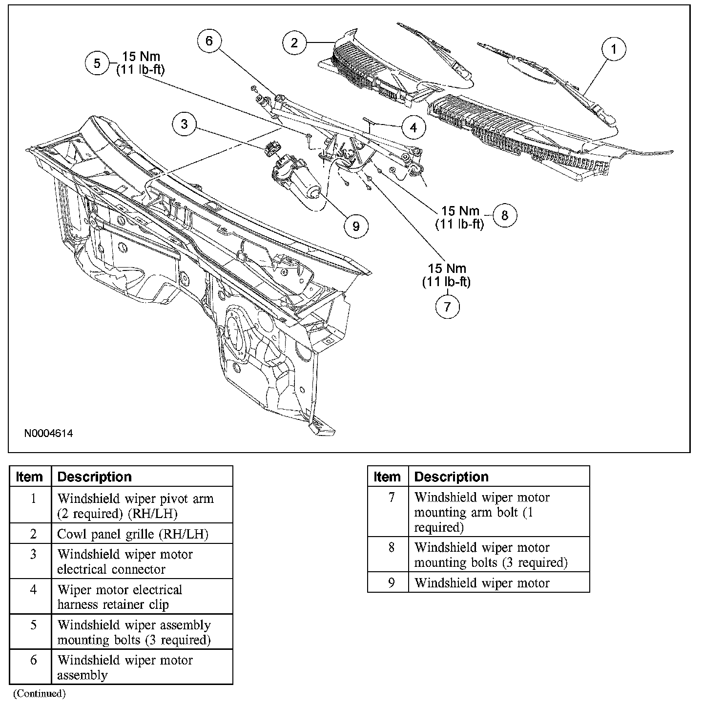Wiper and Washer System - Exploded View, Front