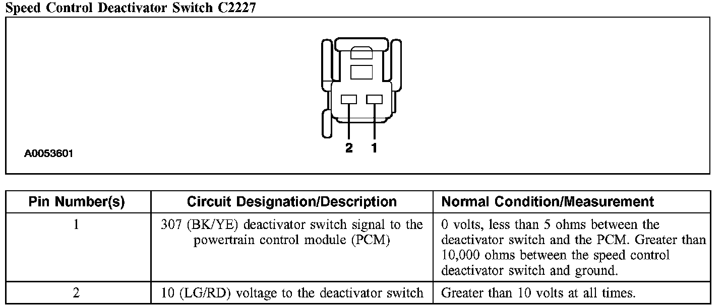 Speed Control Deactivator Switch C2227: