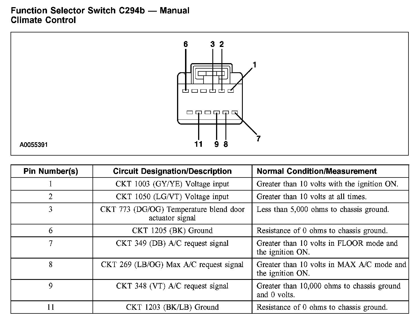 Function Selector Switch C294b - Manual Climate Control: