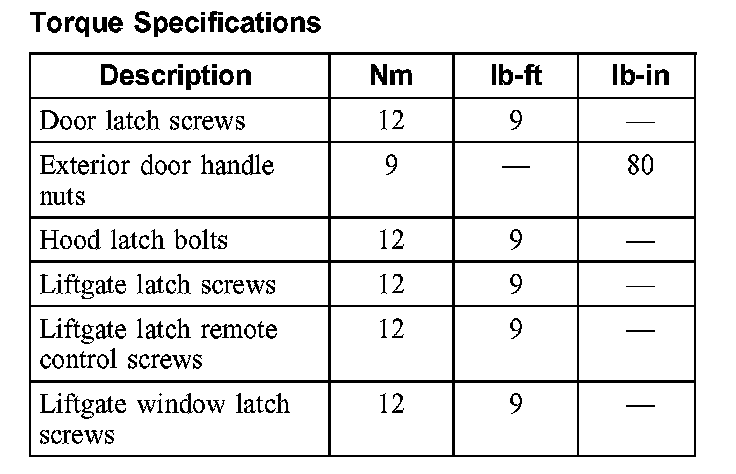 Torque Specifications: