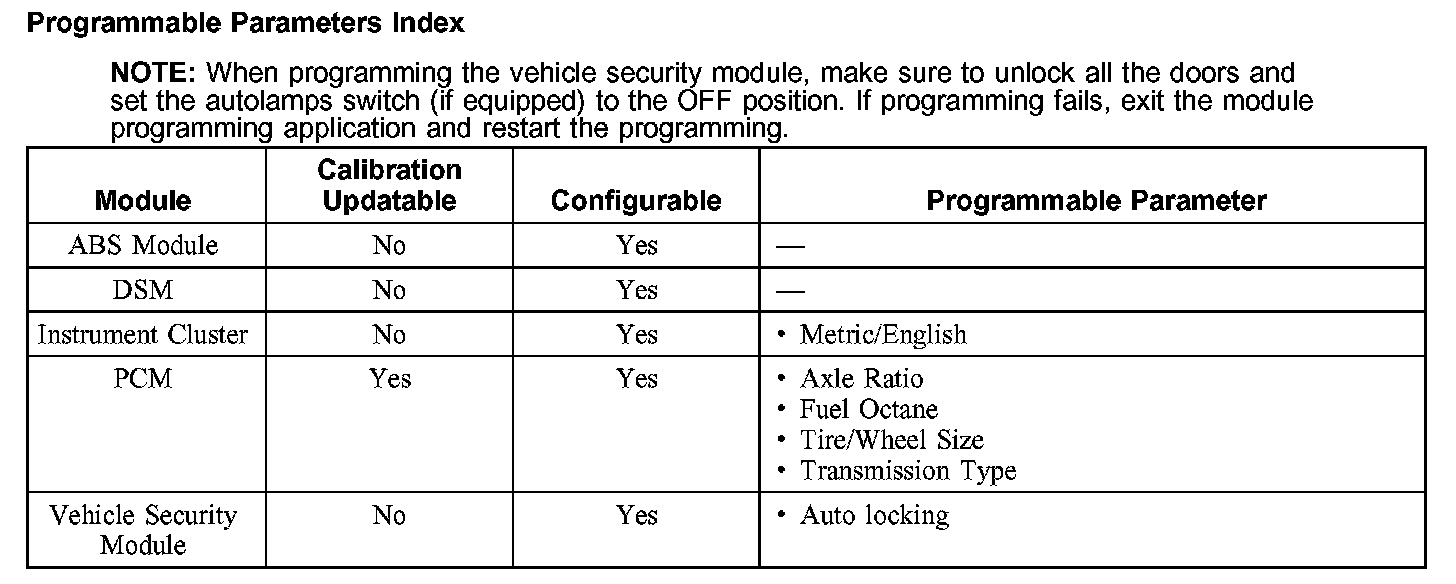 Programmable Parameters Index: