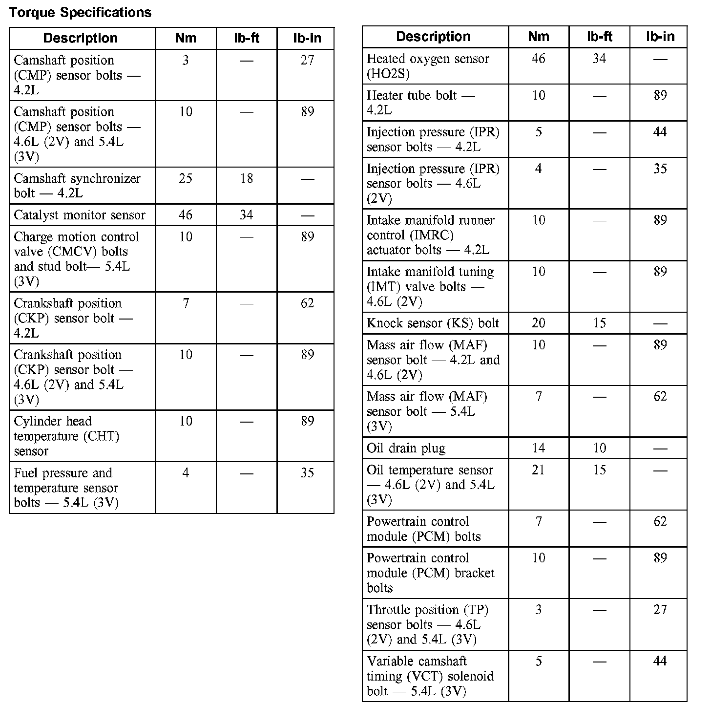 Torque Specifications: