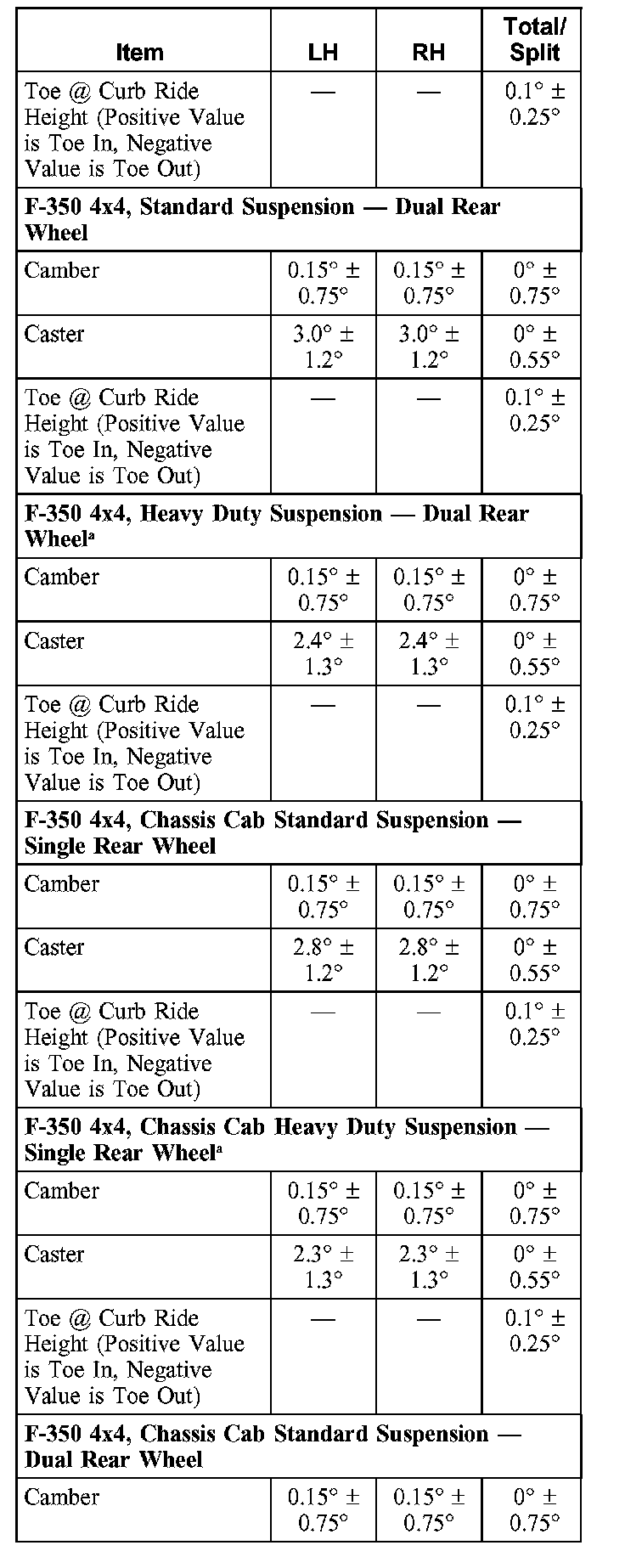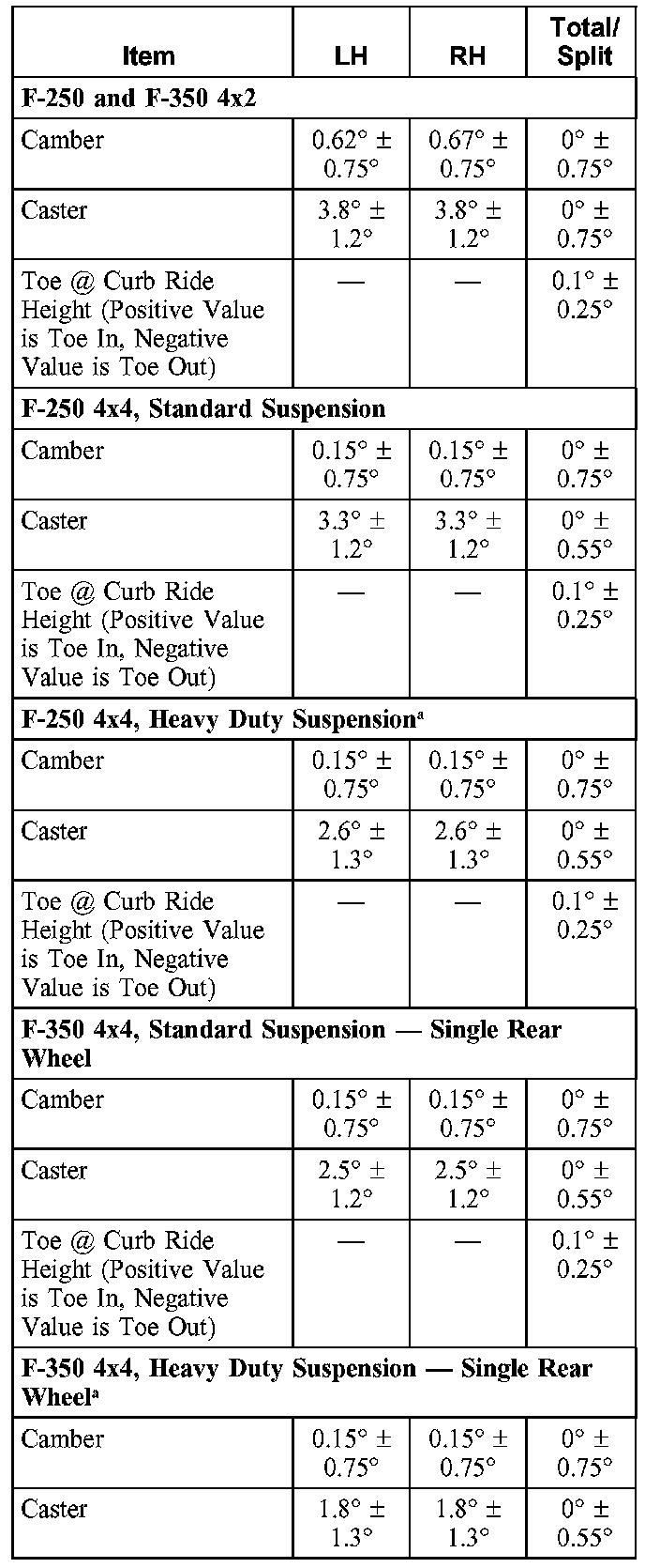 Tabulated caster values for Chassis Cabs reflect values seen in the field and include average 2nd unit body weight effects.