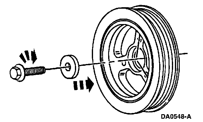 Using a new crankshaft pulley bolt, install the bolt and washer and tighten the bolt in 4 stages.