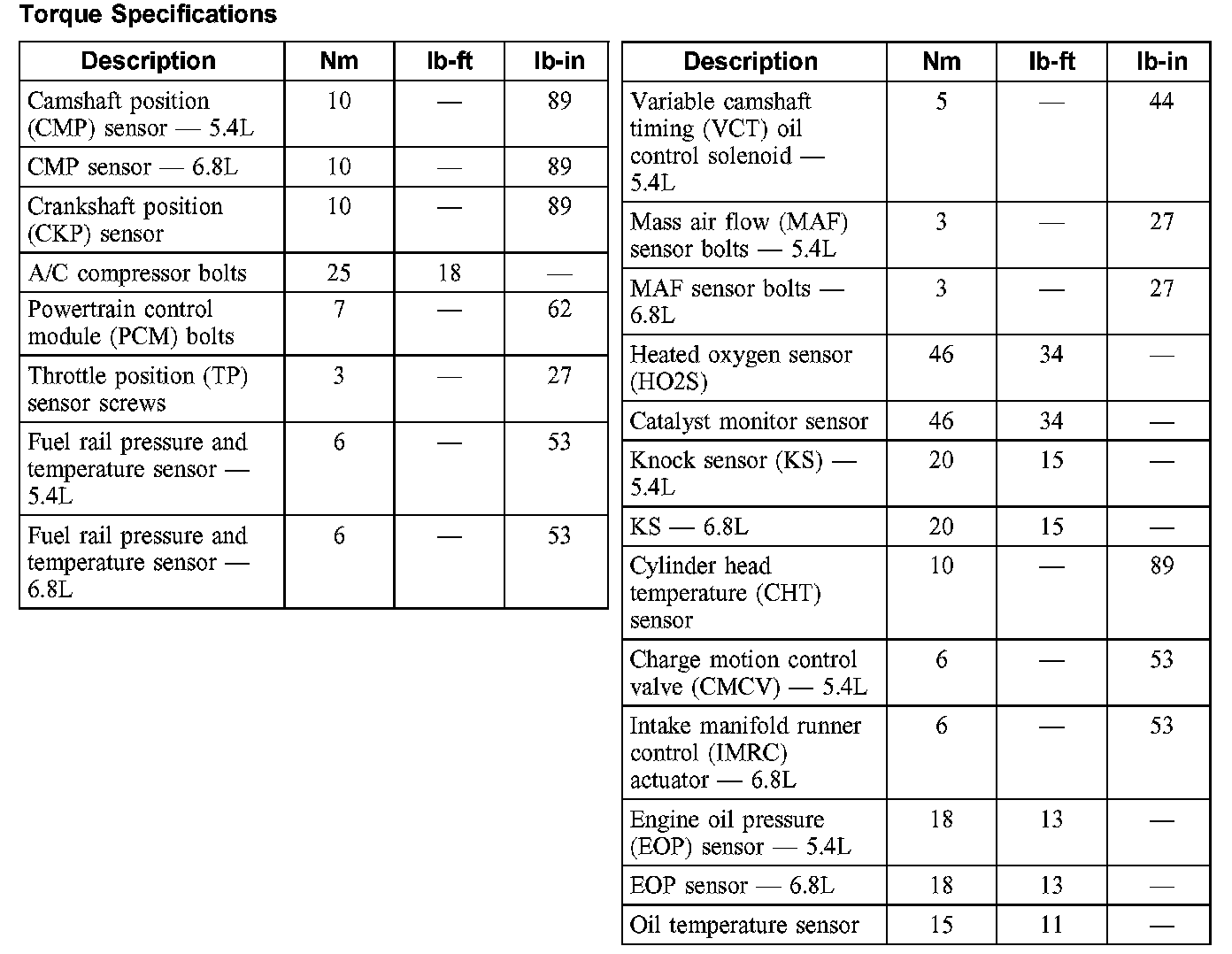 Torque Specifications: