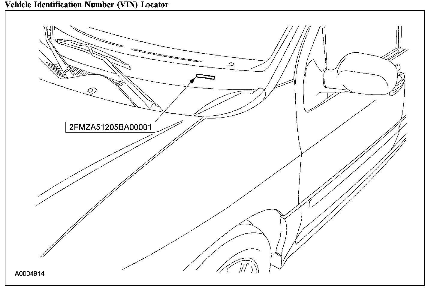 The vehicle identification number (VIN) is a seventeen-digit combination of letters and numbers. The VIN is stamped on a metal tab riveted on the instrument panel, top upper left of the dash. The VIN is also found on the vehicle certification (VC) label.