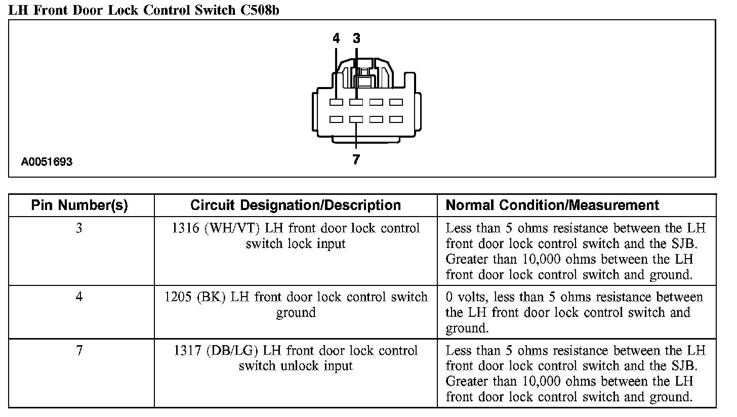 LH Front Door Lock Control Switch C508b: