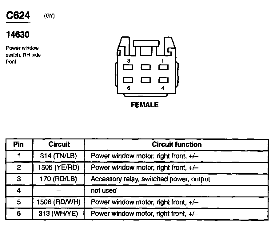 Power Window Switch, RH Side Front