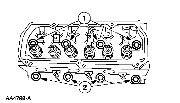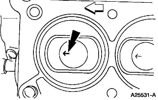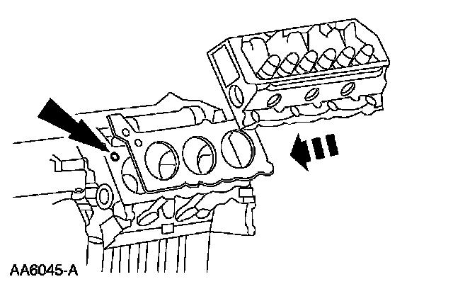 46. NOTE: Install the new cylinder head gaskets with the small hole to the front of the engine.