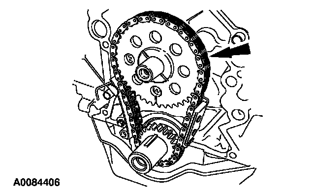 26. Install the timing chain, the camshaft sprocket and the crankshaft sprocket as an assembly.