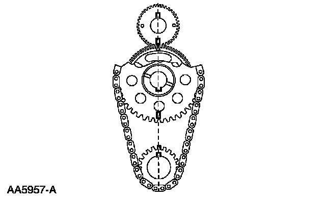 27. CAUTION: All timing marks must be aligned with the No. 1 cylinder set on TDC of the compression stroke or the synchronizer assembly will not be installed correctly.
