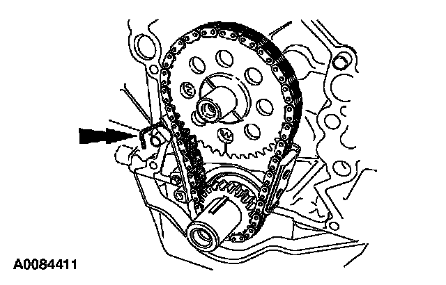 ^ Position the timing chain tensioner.