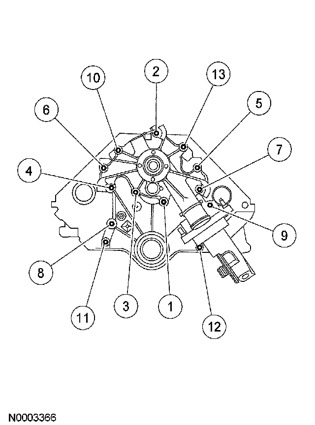 ^ Tighten the engine front cover studs to 7 Nm (62 inch lbs.).