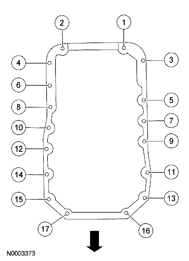 42. Tighten the oil pan bolts in the sequence shown.