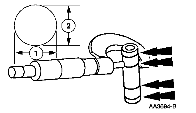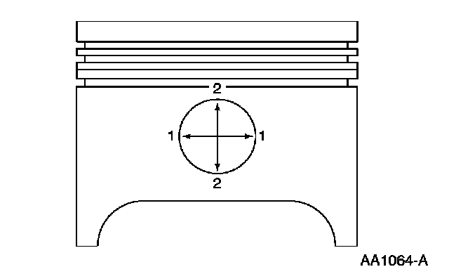 1. Measure the piston pin diameter in two directions at the points shown. Verify the diameter is within specification.