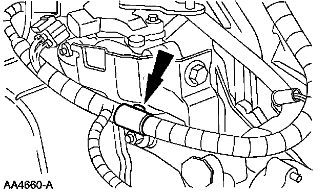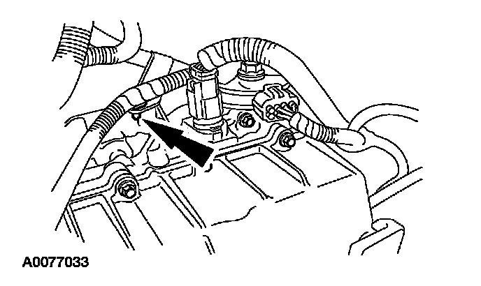 ^ Attach the engine wiring harness retainer.
