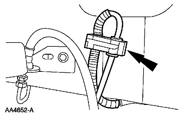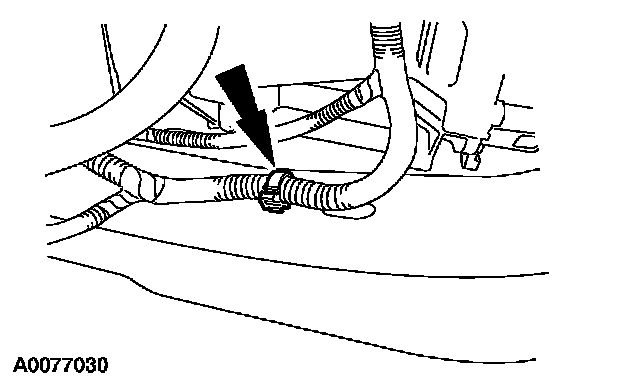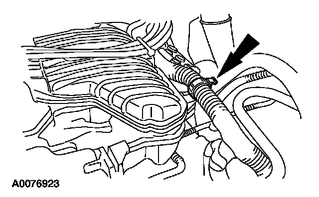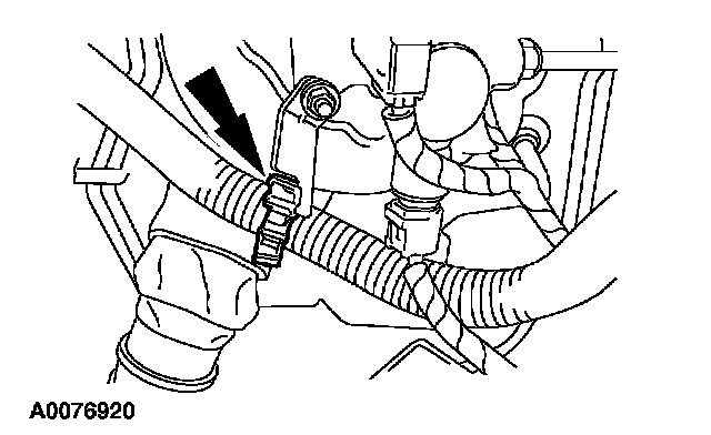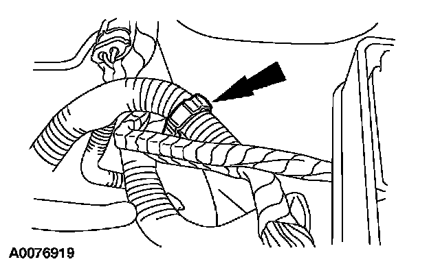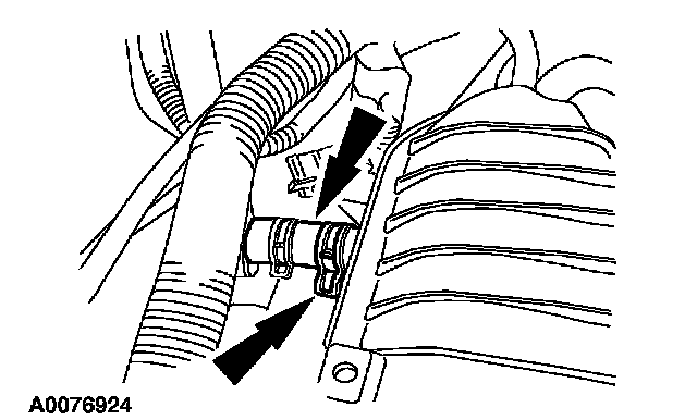 35. Install the power steering cooling hose into the retaining clip.