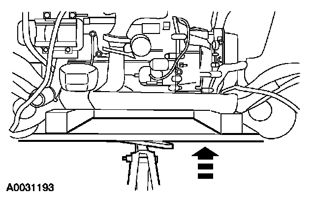 21. Using the powertrain lift, raise the engine, transaxle and subframe assembly in the vehicle.