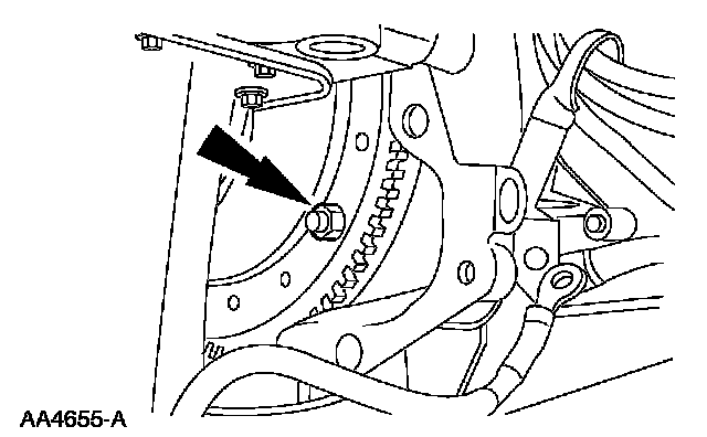 28. Install the 4 torque converter nuts.