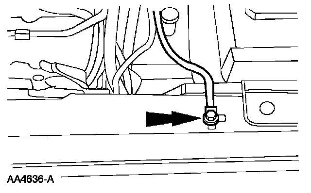 46. Position the engine wire harness ground and install the bolt.