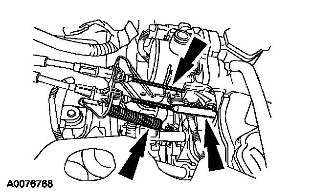 63. Connect the accelerator cable end and the speed control actuator cable end. Install the throttle return spring.