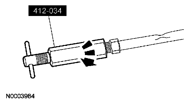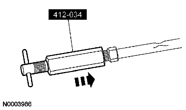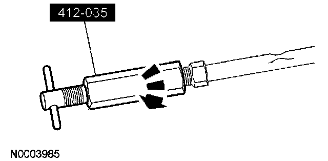 7. If the evaporator core orifice is intact, engage the special tool. Hold the T-handle stationary while rotating the tool body to remove the evaporator core orifice.