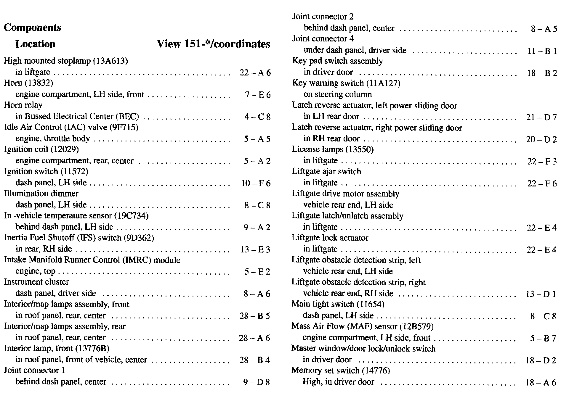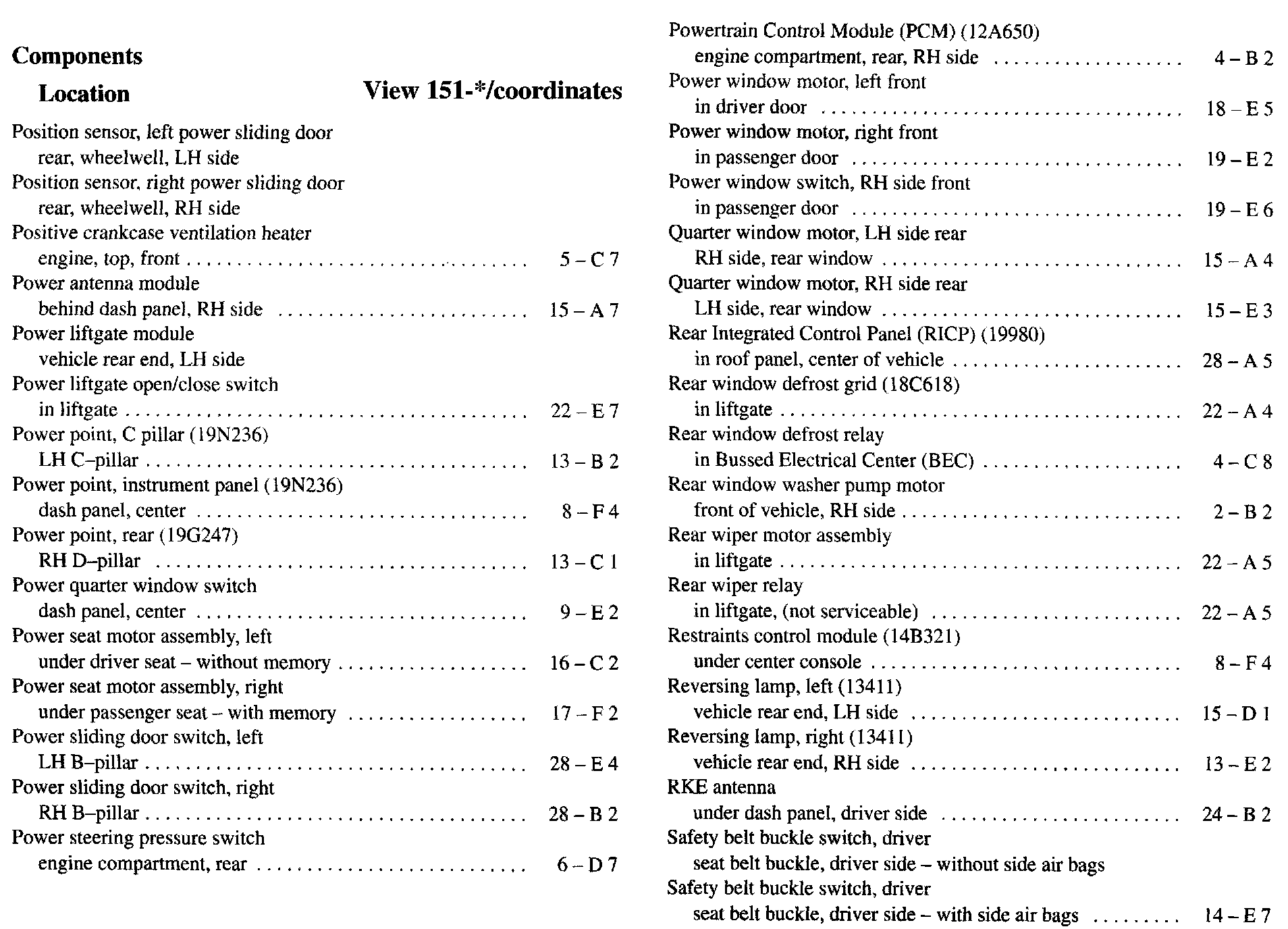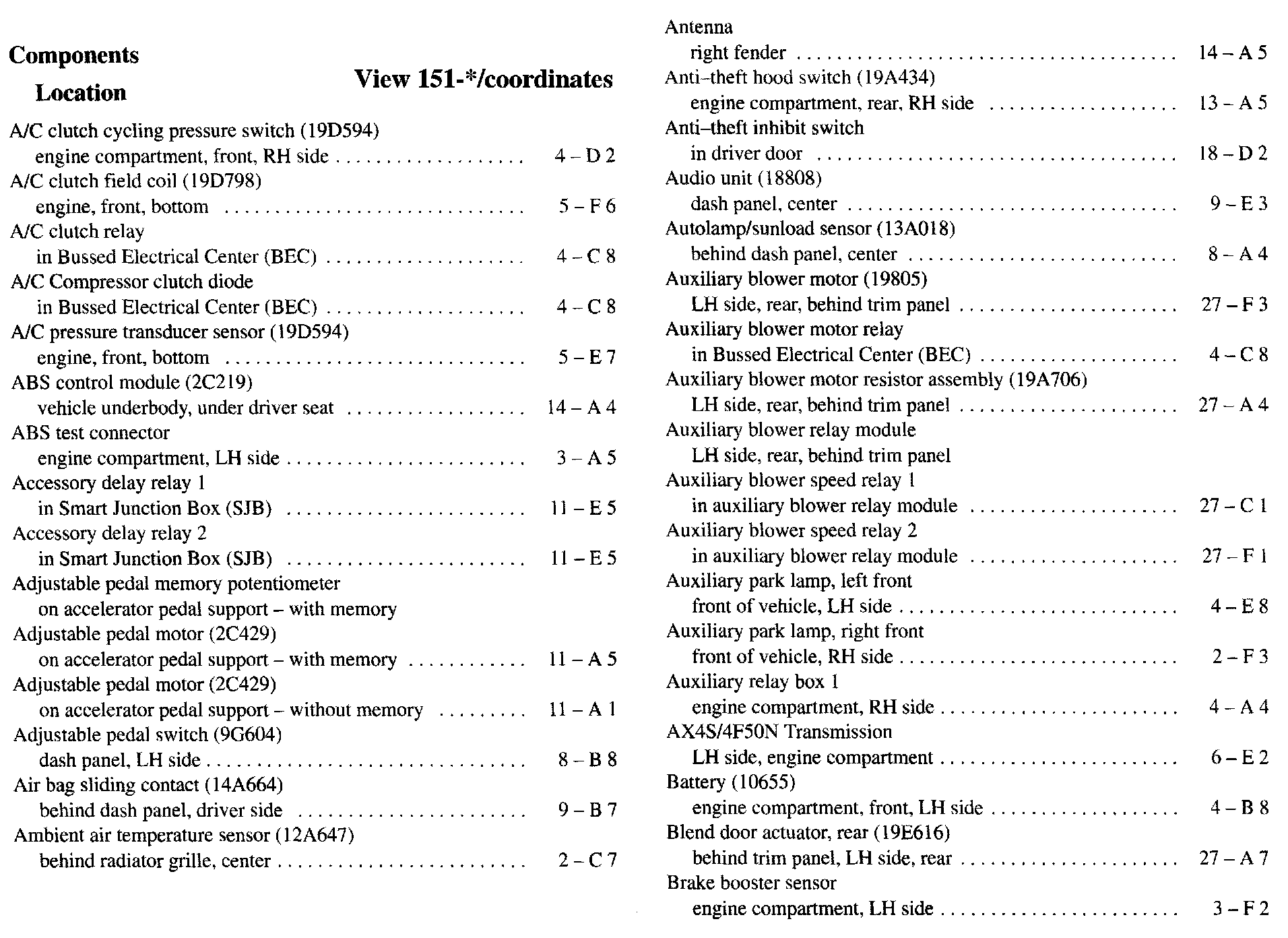 PLEASE NOTE: If a link on the Component Location Index to a View is not provided, that means that the Component and/or View in question does NOT apply to the vehicle model selected.
