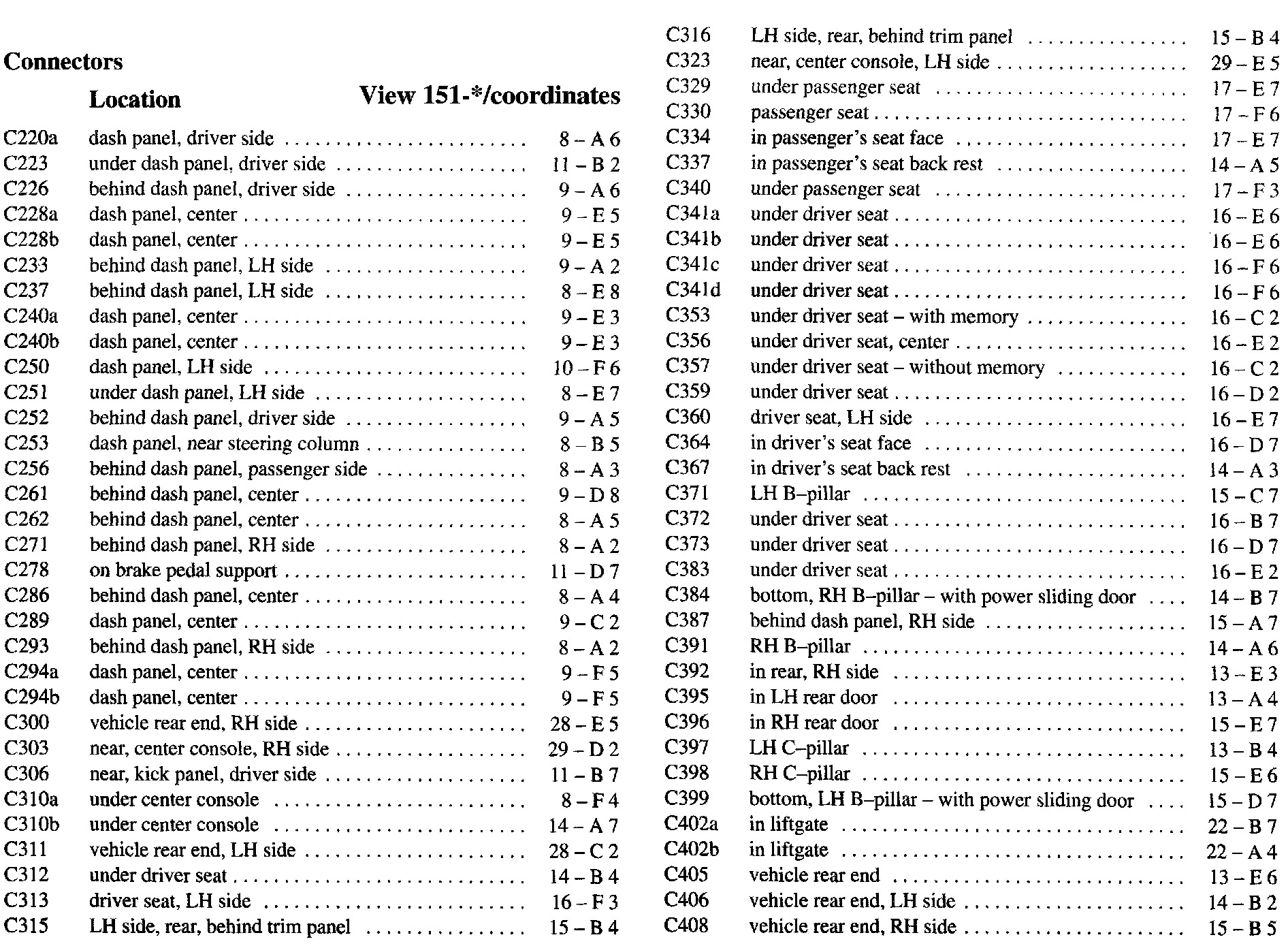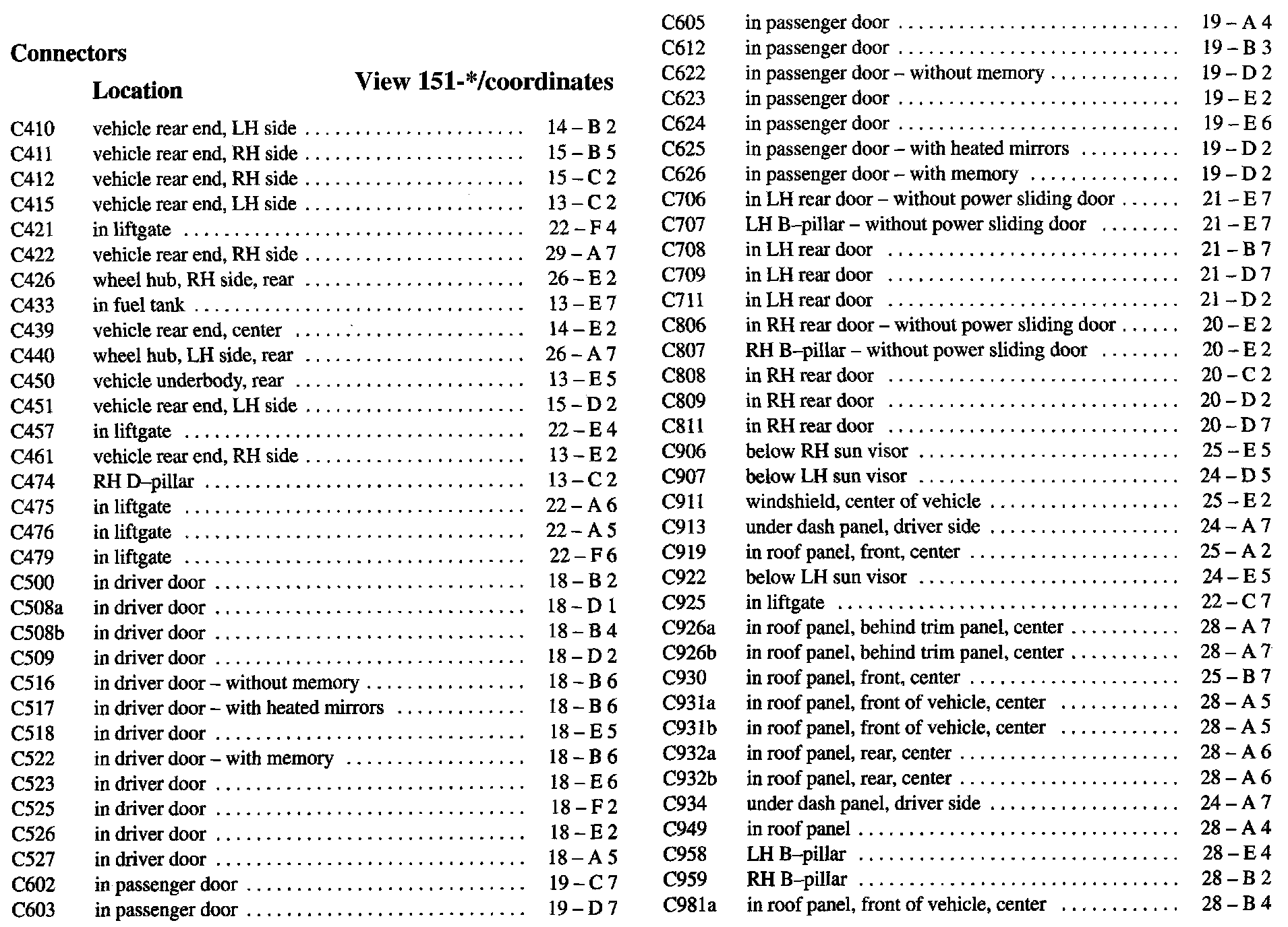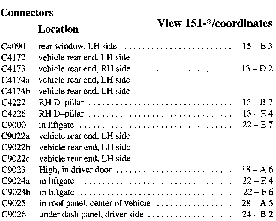 PLEASE NOTE: If a link on the Connector Location Index to a View is not provided, that means that the Connector and/or View in question does NOT apply to the vehicle model selected.