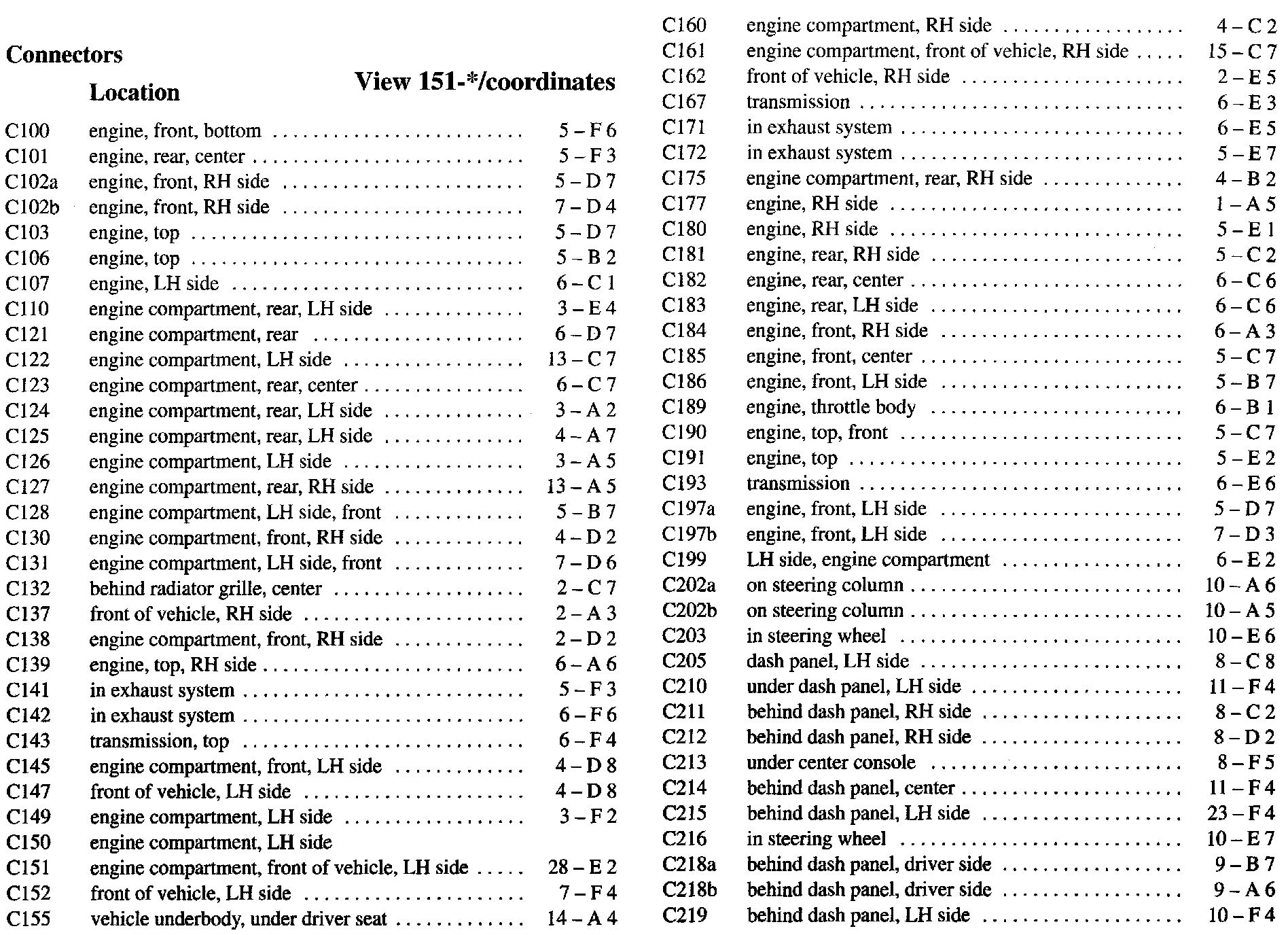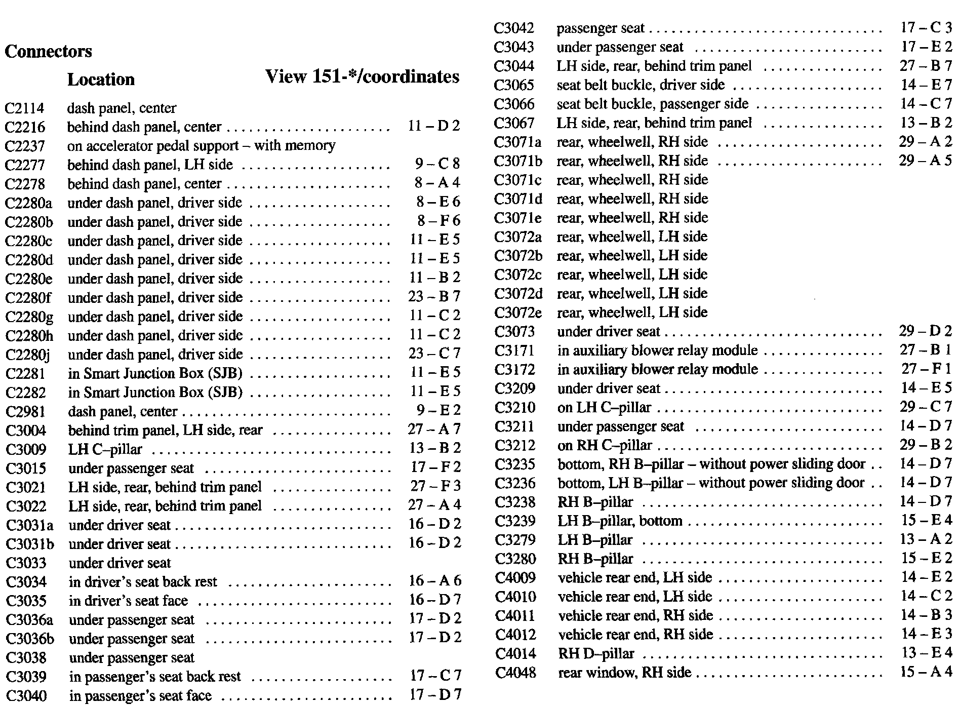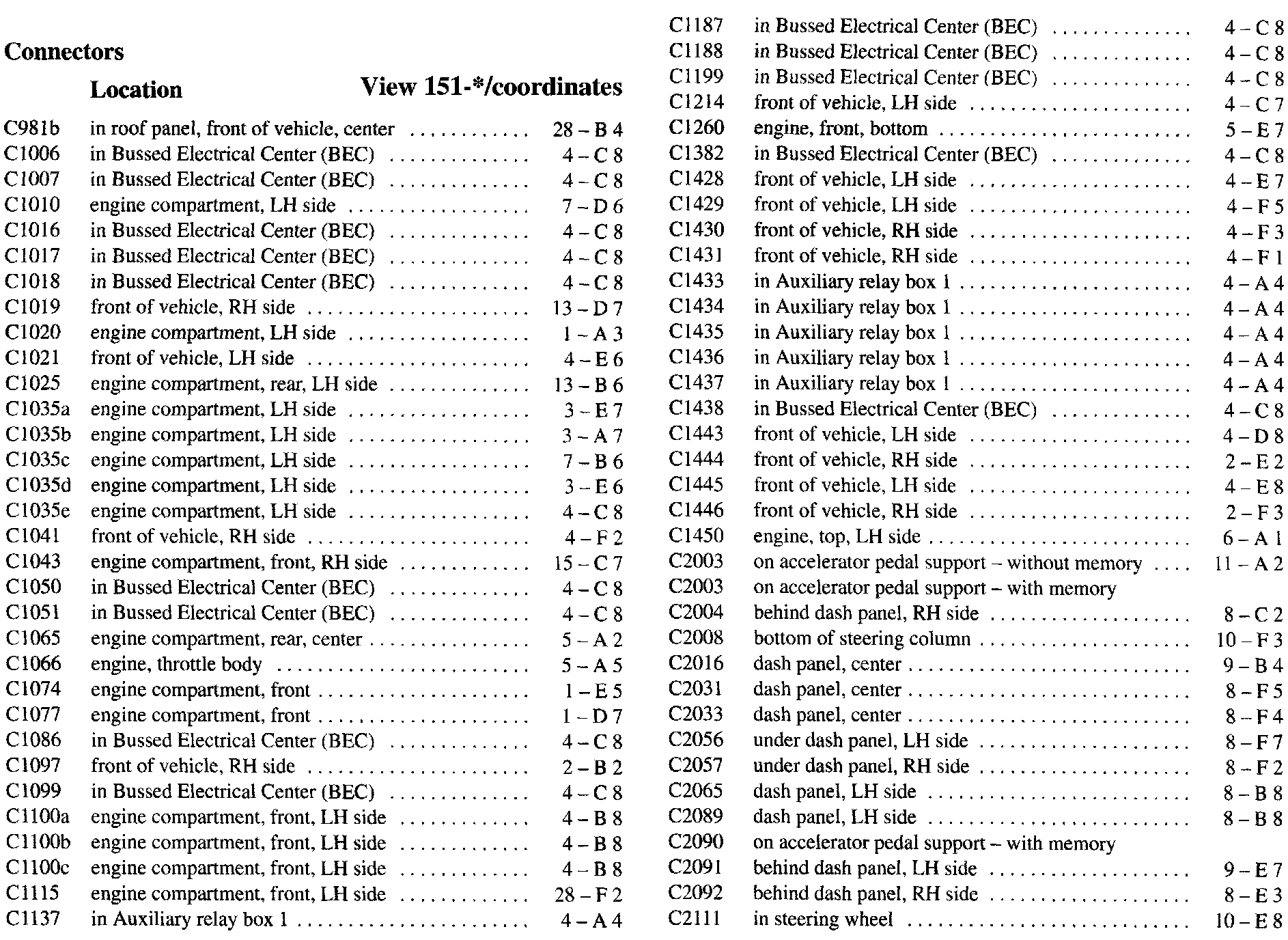 PLEASE NOTE: If a link on the Connector Location Index to a View is not provided, that means that the Connector and/or View in question does NOT apply to the vehicle model selected.