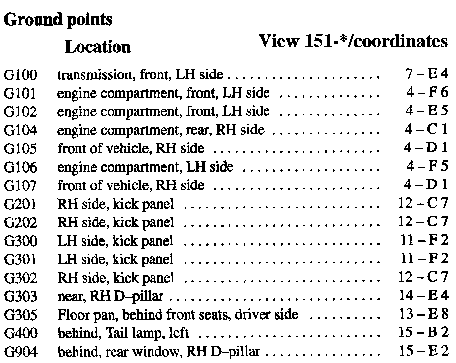 If a link on the Ground Location Index to a View is not provided, that means that the Ground and/or View in question does NOT apply to the vehicle model selected.