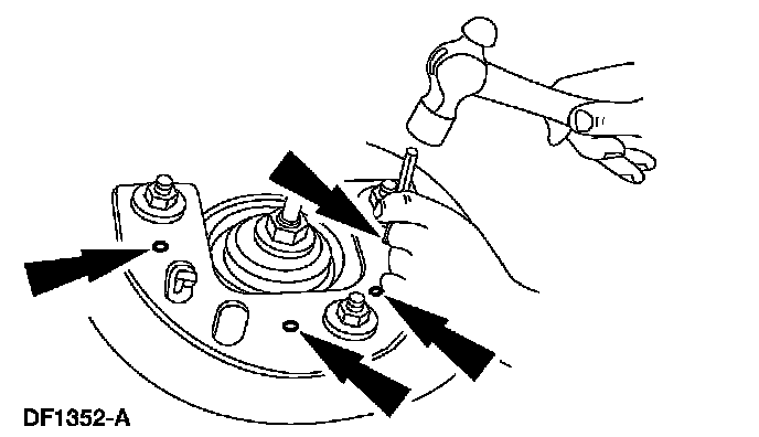 Drill 3 3.2-mm (0.12-inch) holes through the alignment plate and shock tower.