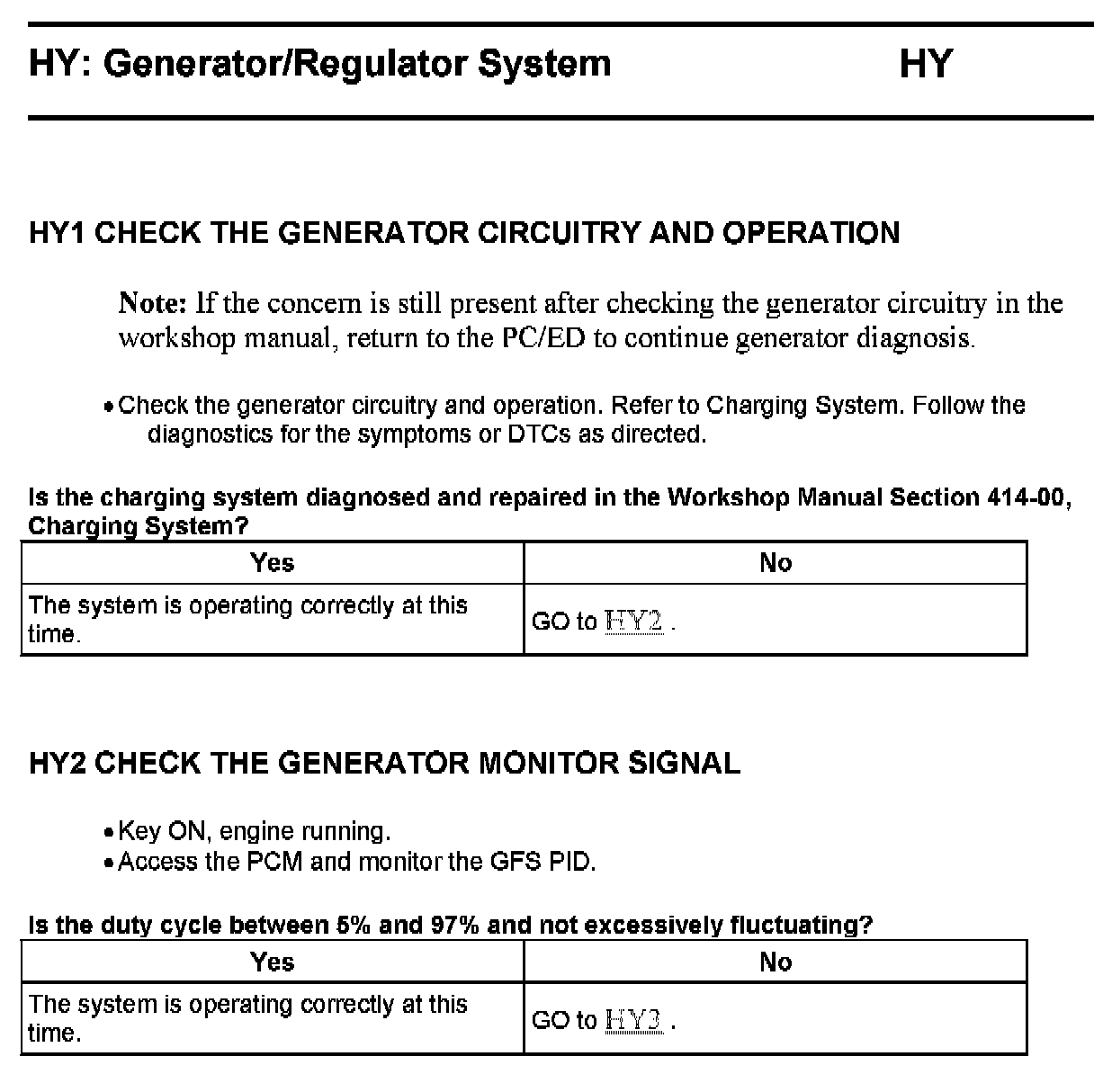 PINPOINT TEST HY: GENERATOR/REGULATOR SYSTEM