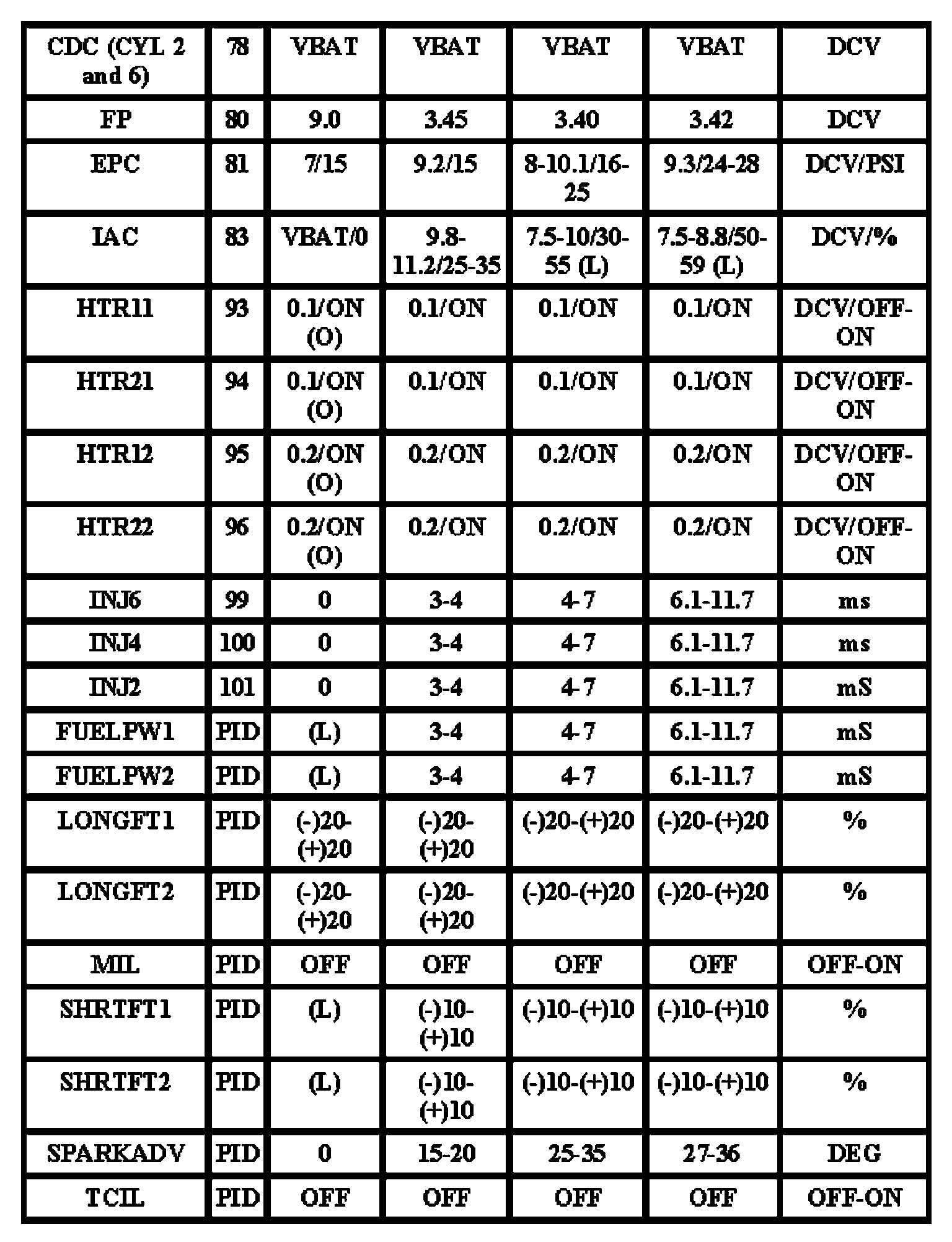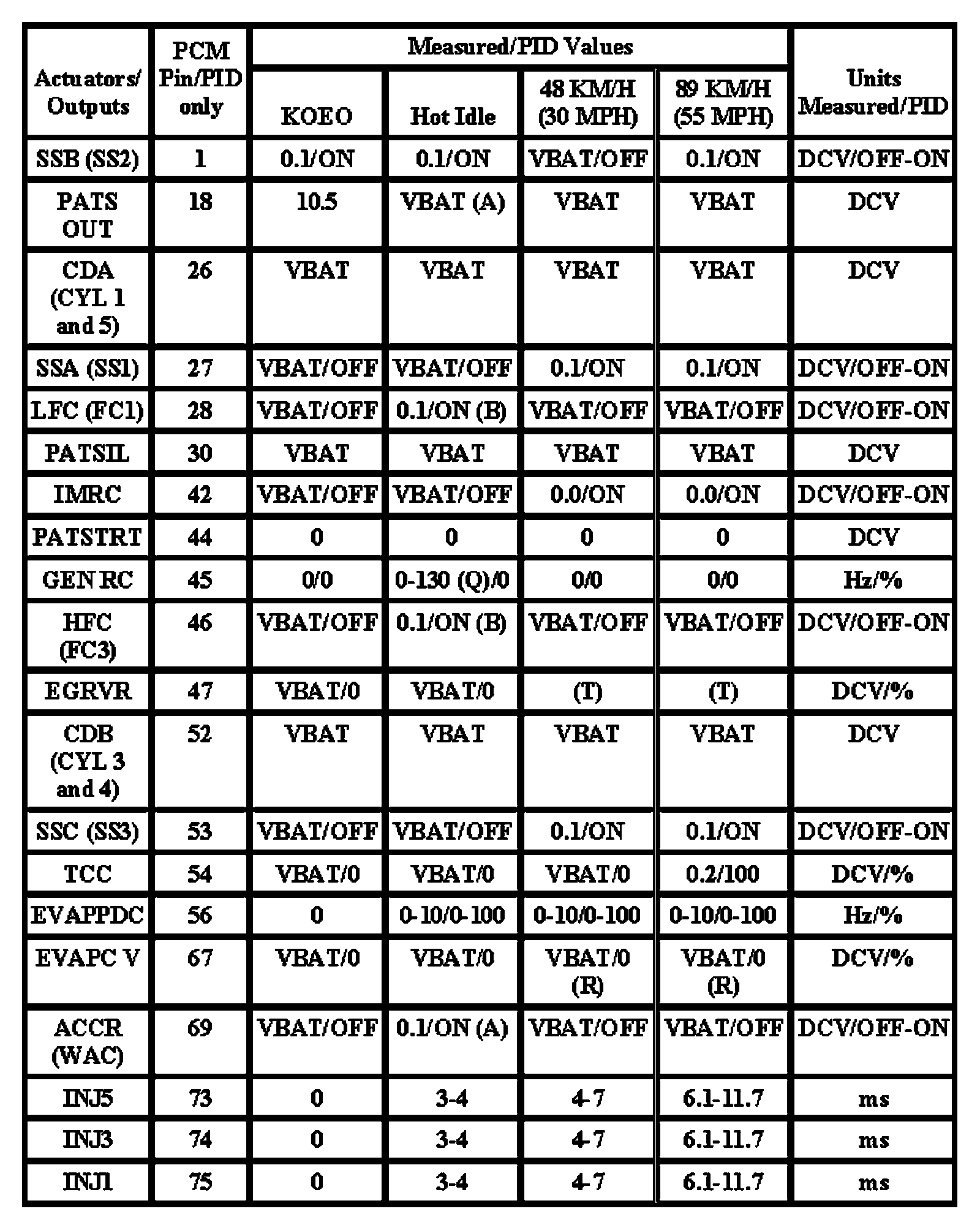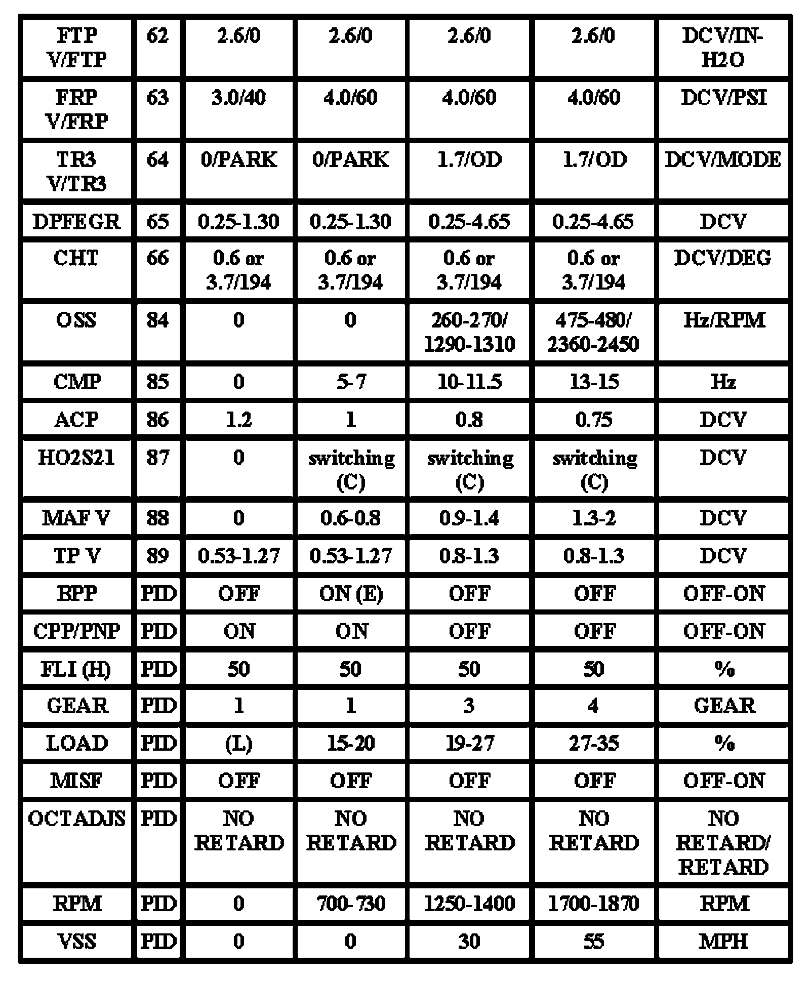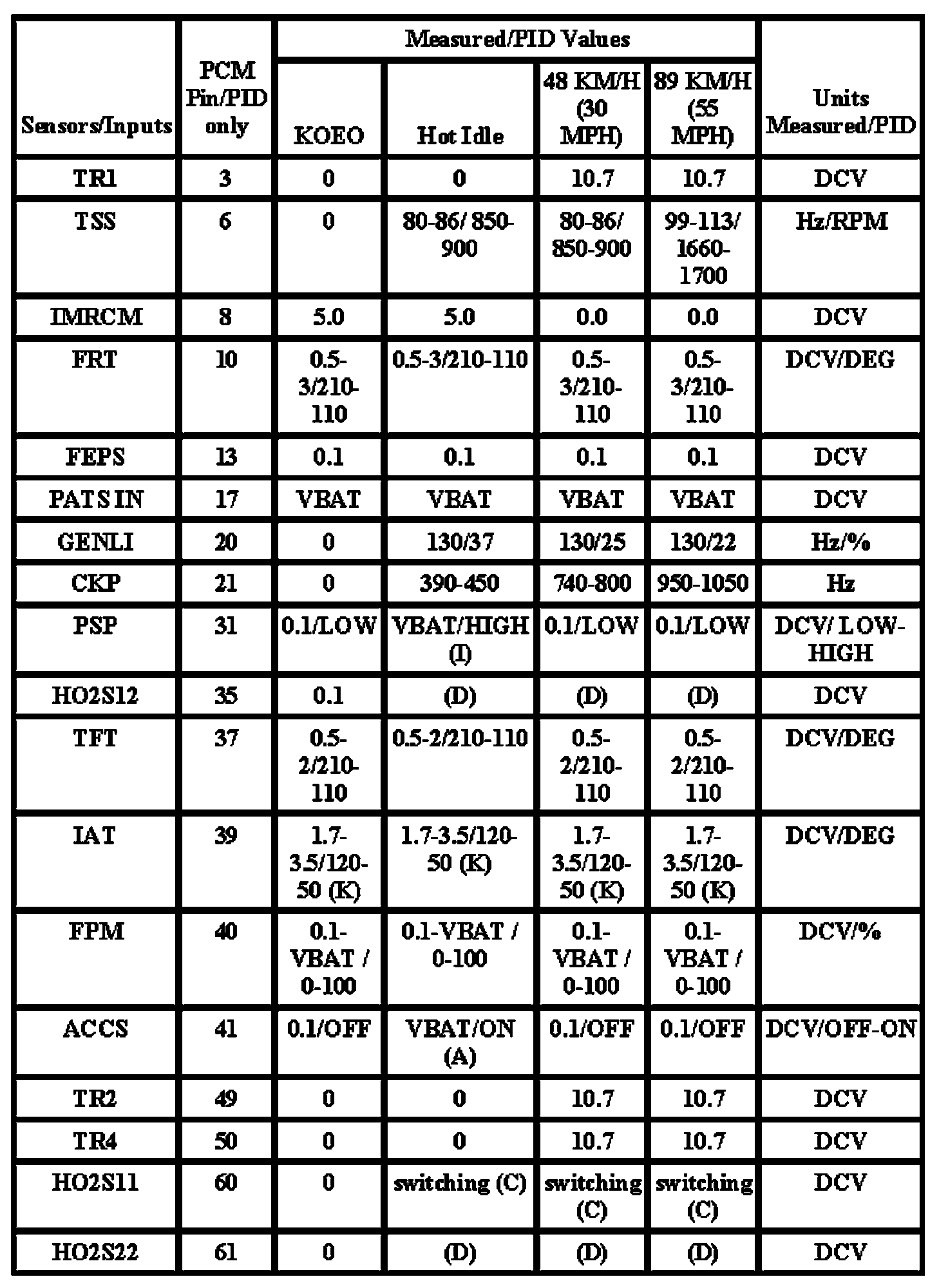 Note: All generic OBD readings under no load (PARK or NEUTRAL).