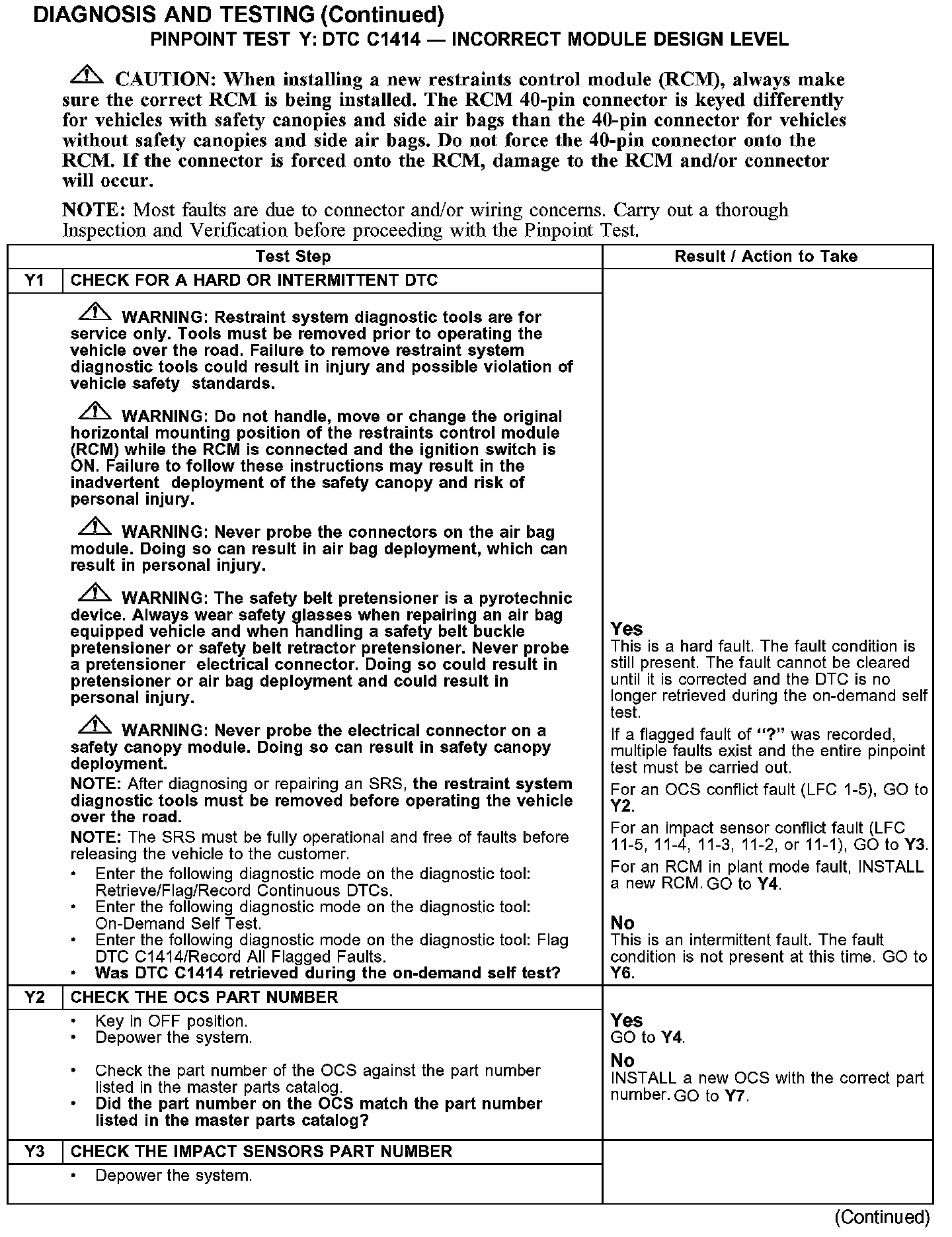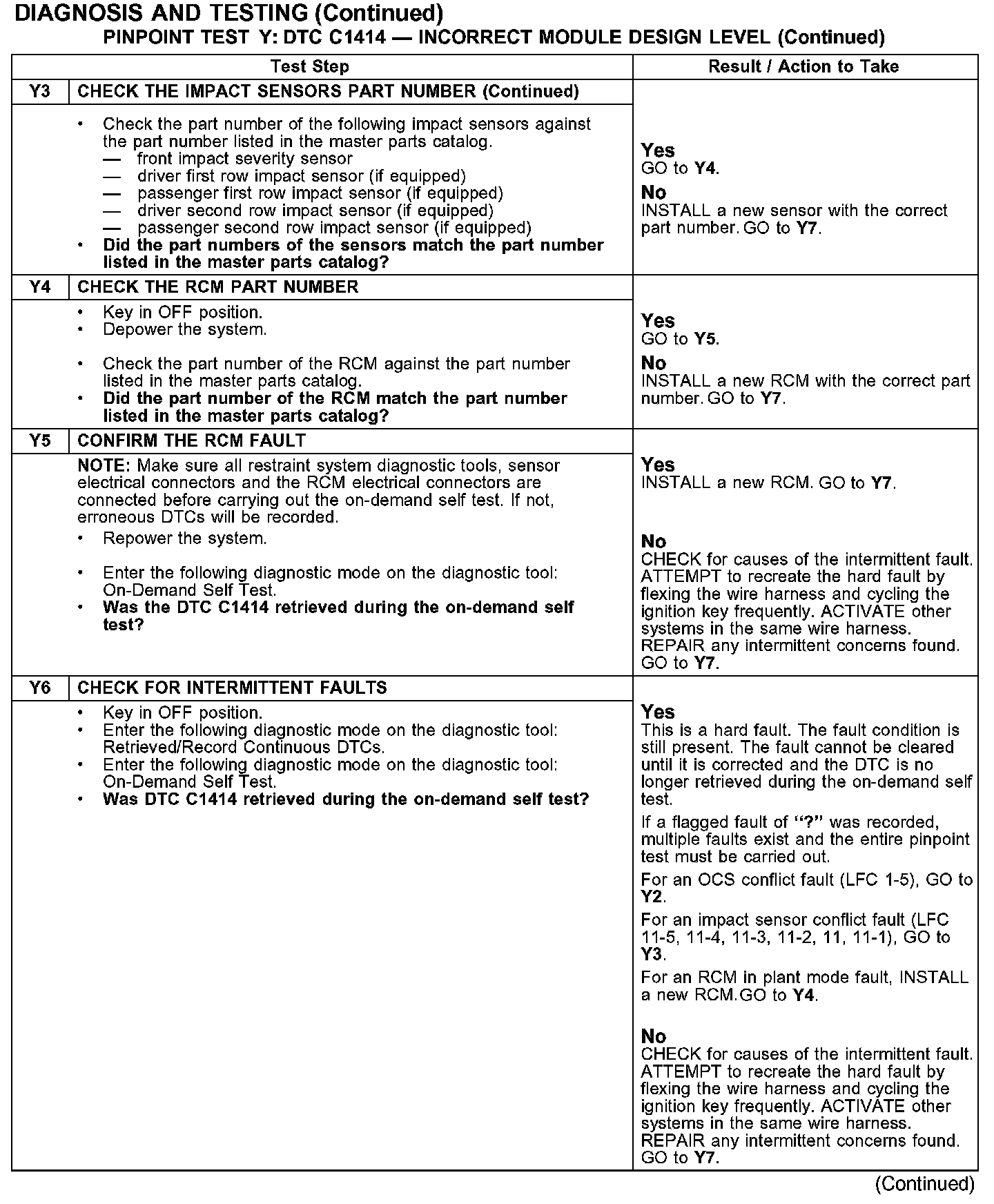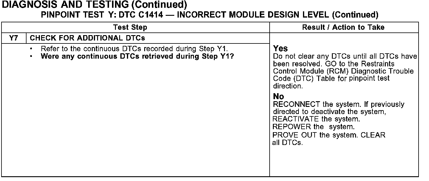 PINPOINT TEST Y: DTC C1414 - INCORRECT MODEL DESIGN LEVELY1-Y3: