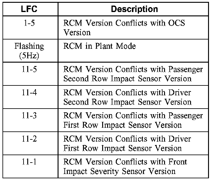 If the RCM receives conflicting information from the impact sensors or OCS system it will store diagnostic trouble code (DTC) C1414 in memory and, depending on the fault, flash a lamp fault code on the air bag indicator.