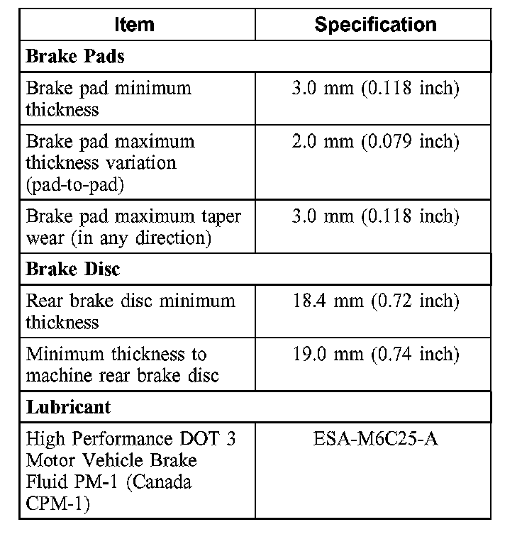 General Specifications, Rear