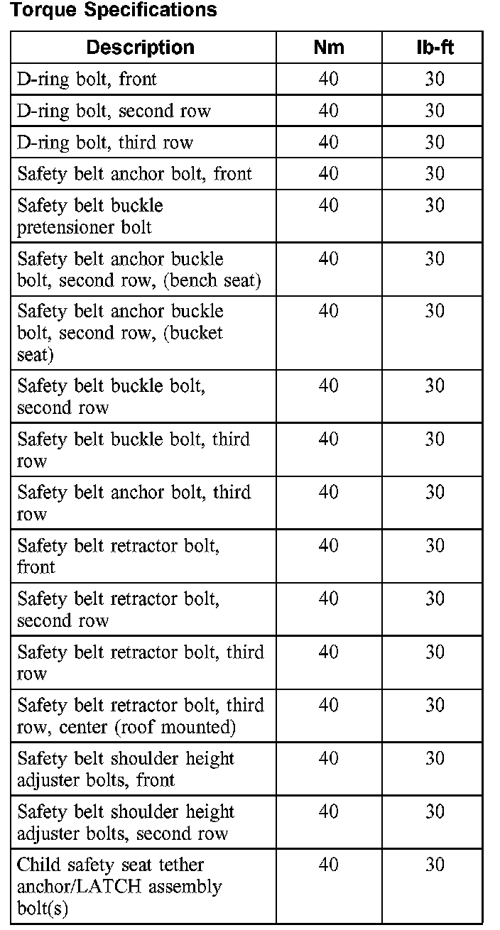 Torque Specifications: