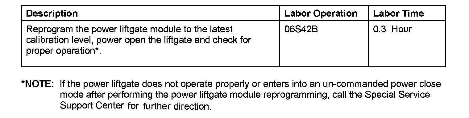 Recall - Power Liftgate Module Reprogramming